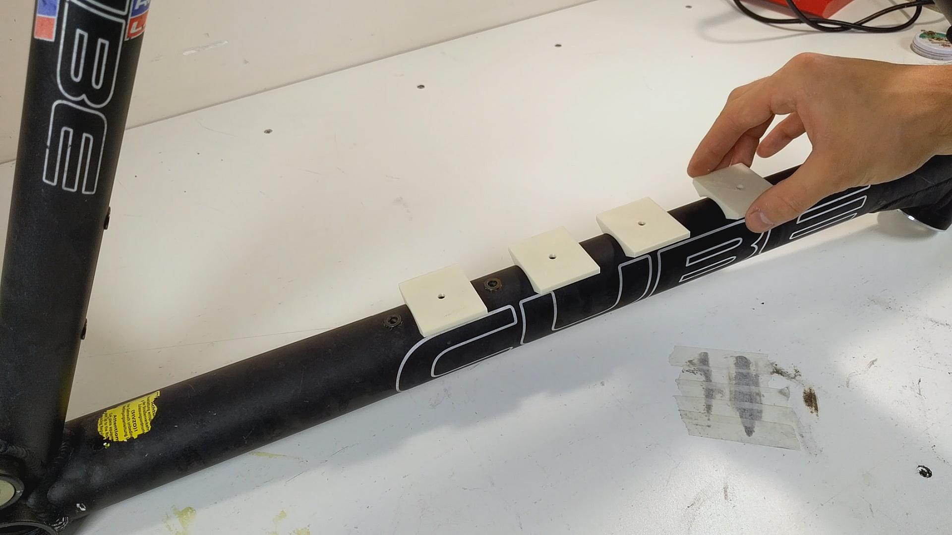 To mount the battery on the frame reliably, I needed to come up with some sort of support for the battery holder. I quickly made this 3D support model on Sketchup according to my bike frame dimensions and had 4 copies of it printed with a 3D printer. I do not own a 3D printer myself but there are many people around that would be happy to help you out with a few parts for cheap or for a big "thanks". Download the model at the bottom of this step and adjust to your frame dimensions if necessary.