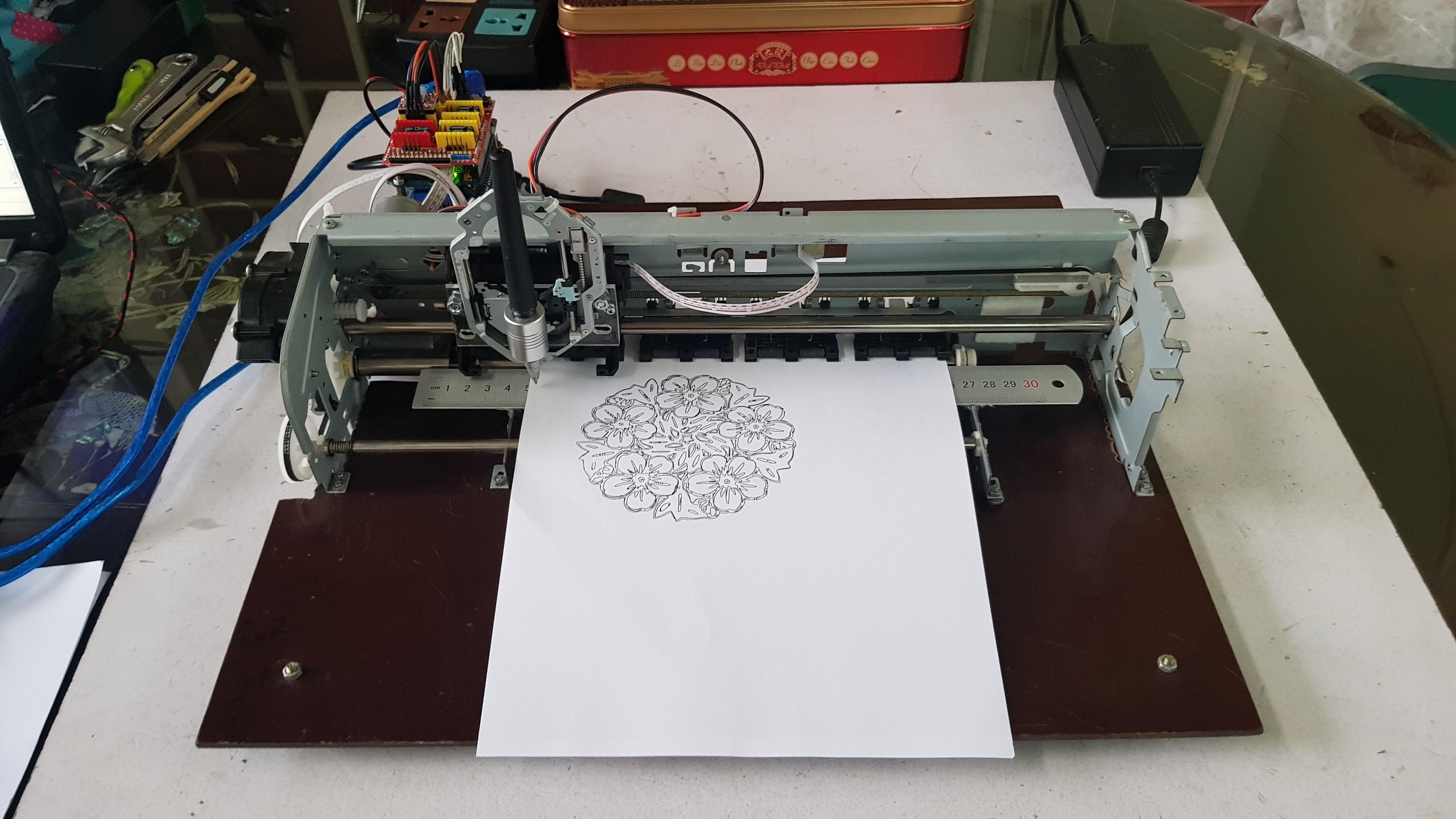 You can see some pictures of this project. My 3 axis CNC plotter works pretty good but it need to be more fine-tuned and improvement.