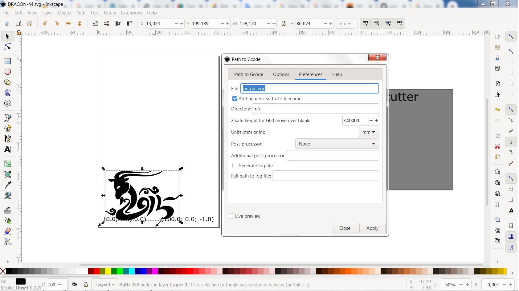 - Go to Extensions ‣ Gcodetools ‣ Path to Gcode