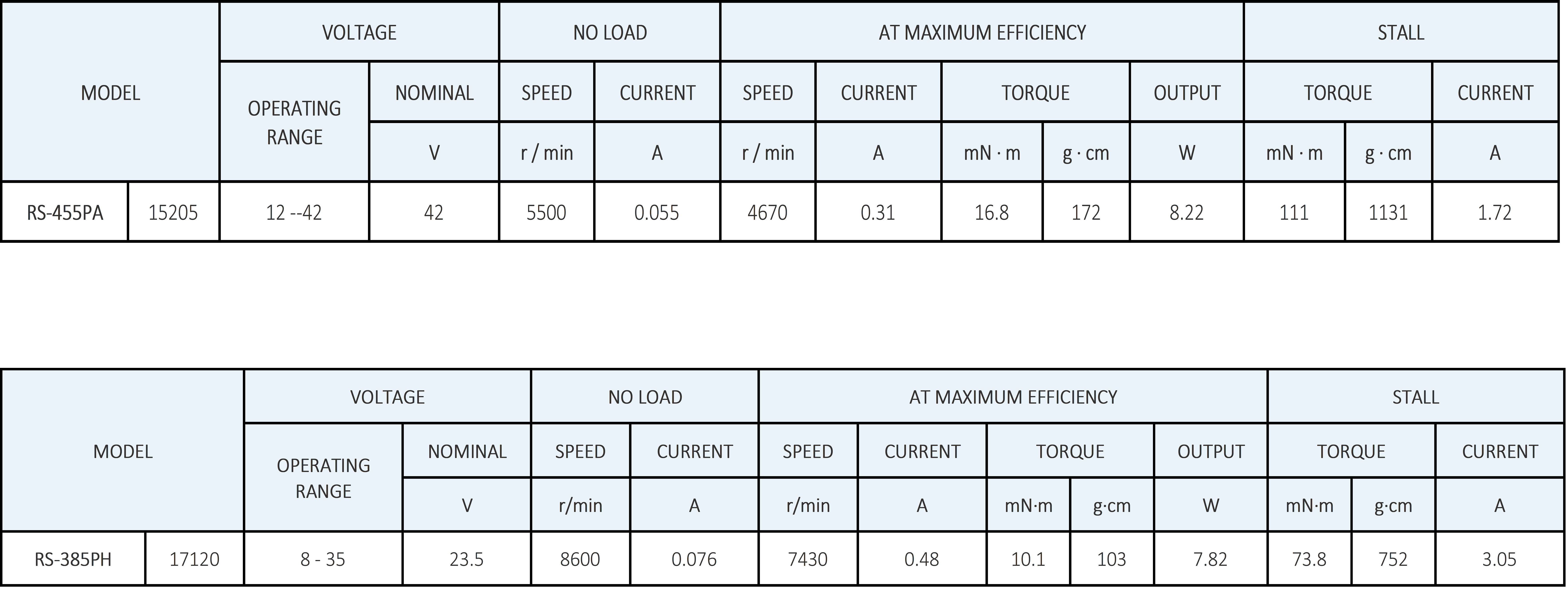 Through my searches on internet, perhaps these motors belong to the MABUCHI MOTOR manufacturer. But I could not find out the specifications of these motors on MABUCHI MOTOR website according to the order number written on the motors body. I only saw two DC motors equivalent to my printer motors, as follows:
