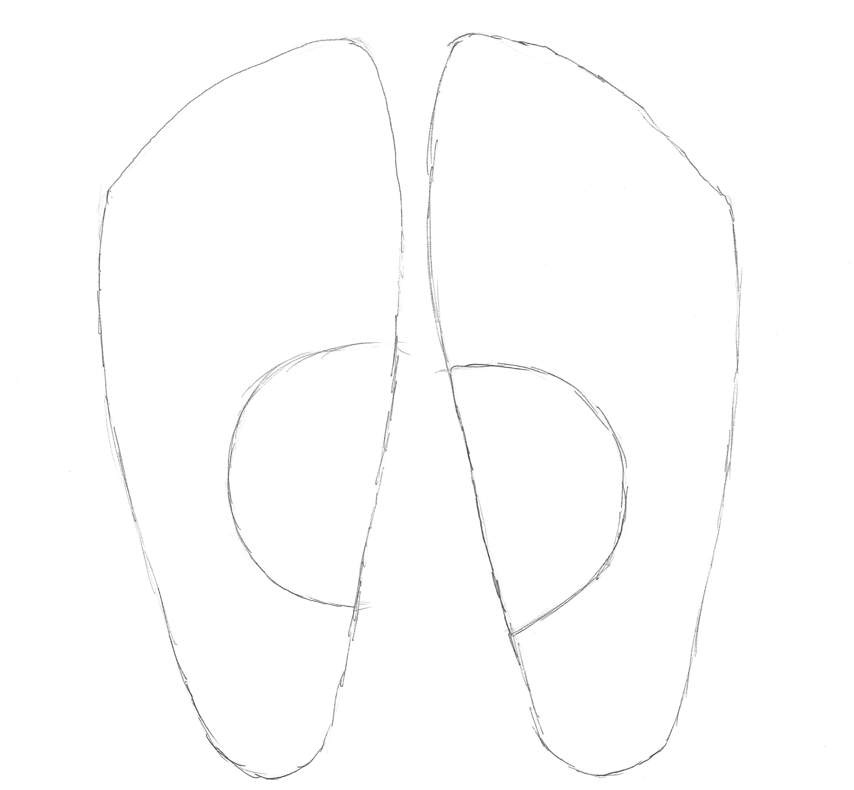 In your 3d program of choice, create a 1mm thick tracing of your feet. I recommend adding extra length to the toe areas to compensate for different shoe lengths that can be trimmed later if needed. With the measurements of the impressions, create the arch supports and apply to the 1mm thick models. If you can in your program of choice, add a fillet/chamber to where the arch meets insole.