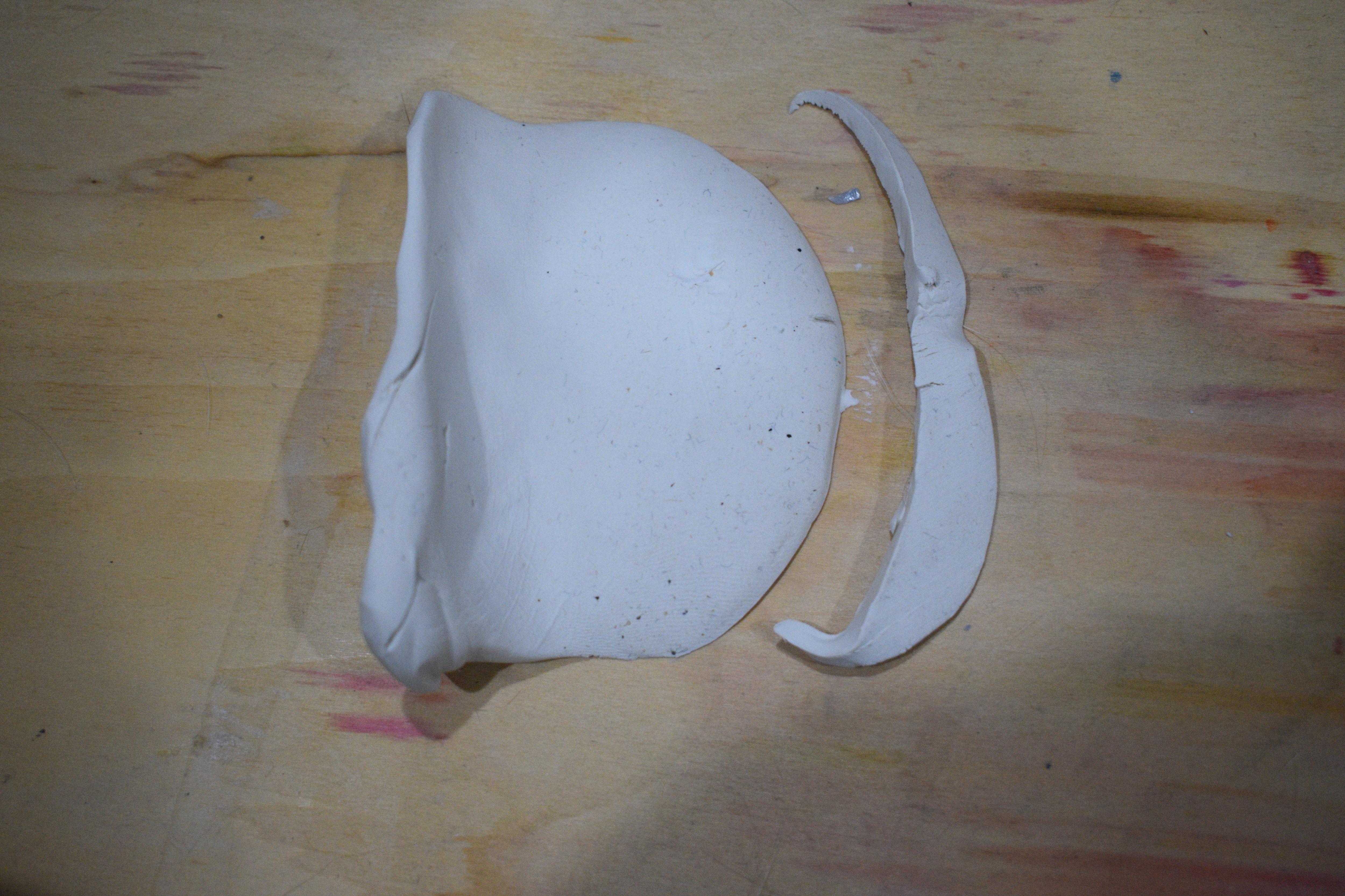 2: Using a cutting tool, remove extra clay/dough. Mold outer clay to the inside foot as needed.
