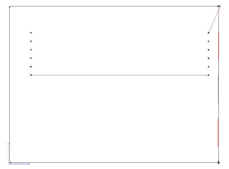 Finally I cut out the board and drilled holes for the FTDI header pins using a 1/32" end mill. I loaded the outline.png file into the fab modules and selected PCB outline under process. Here is what the path looks like: