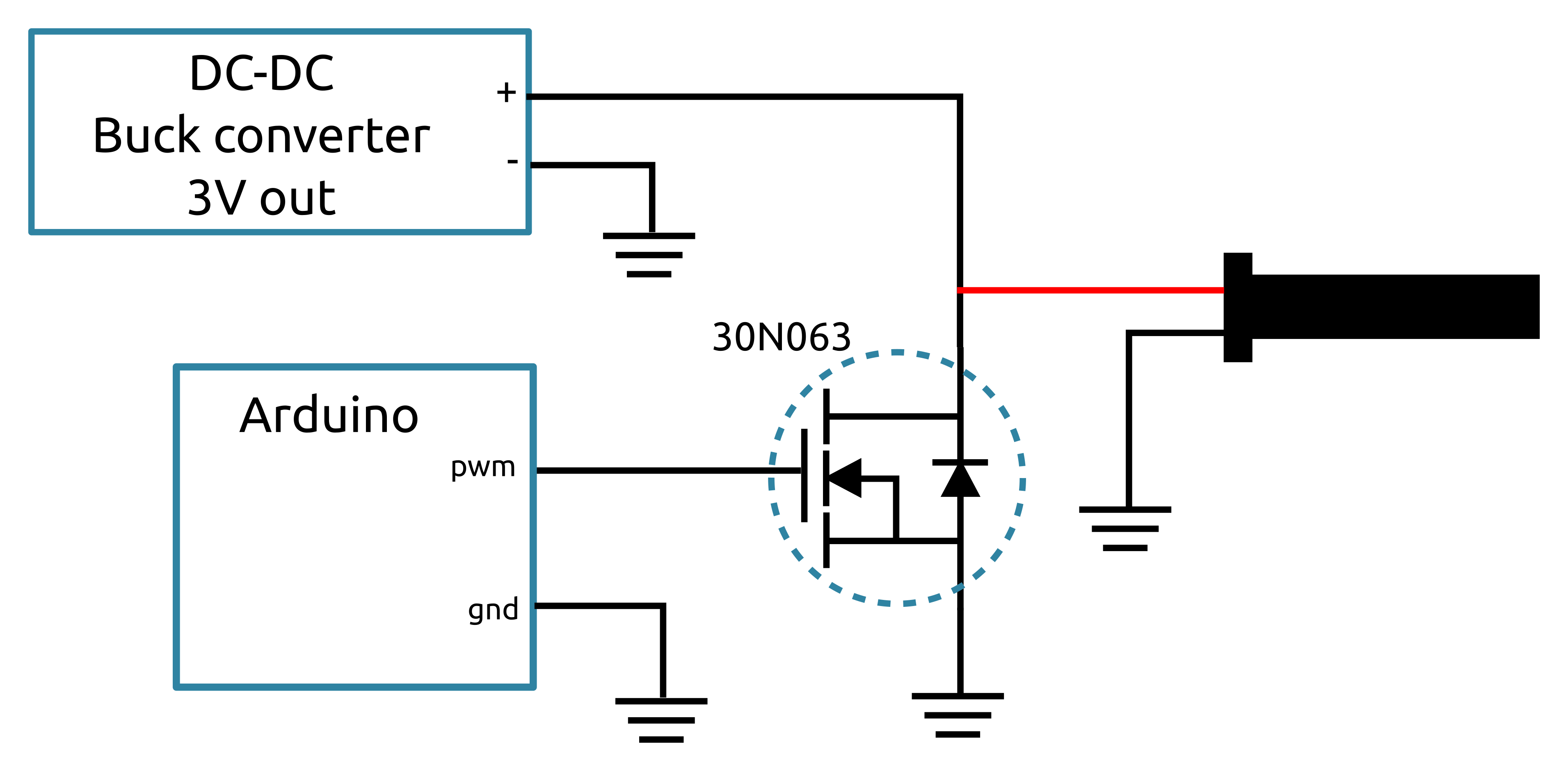 Fig. 7.2 Schematic of how to use a MOSFET to drive e.g. a laser pointer note that