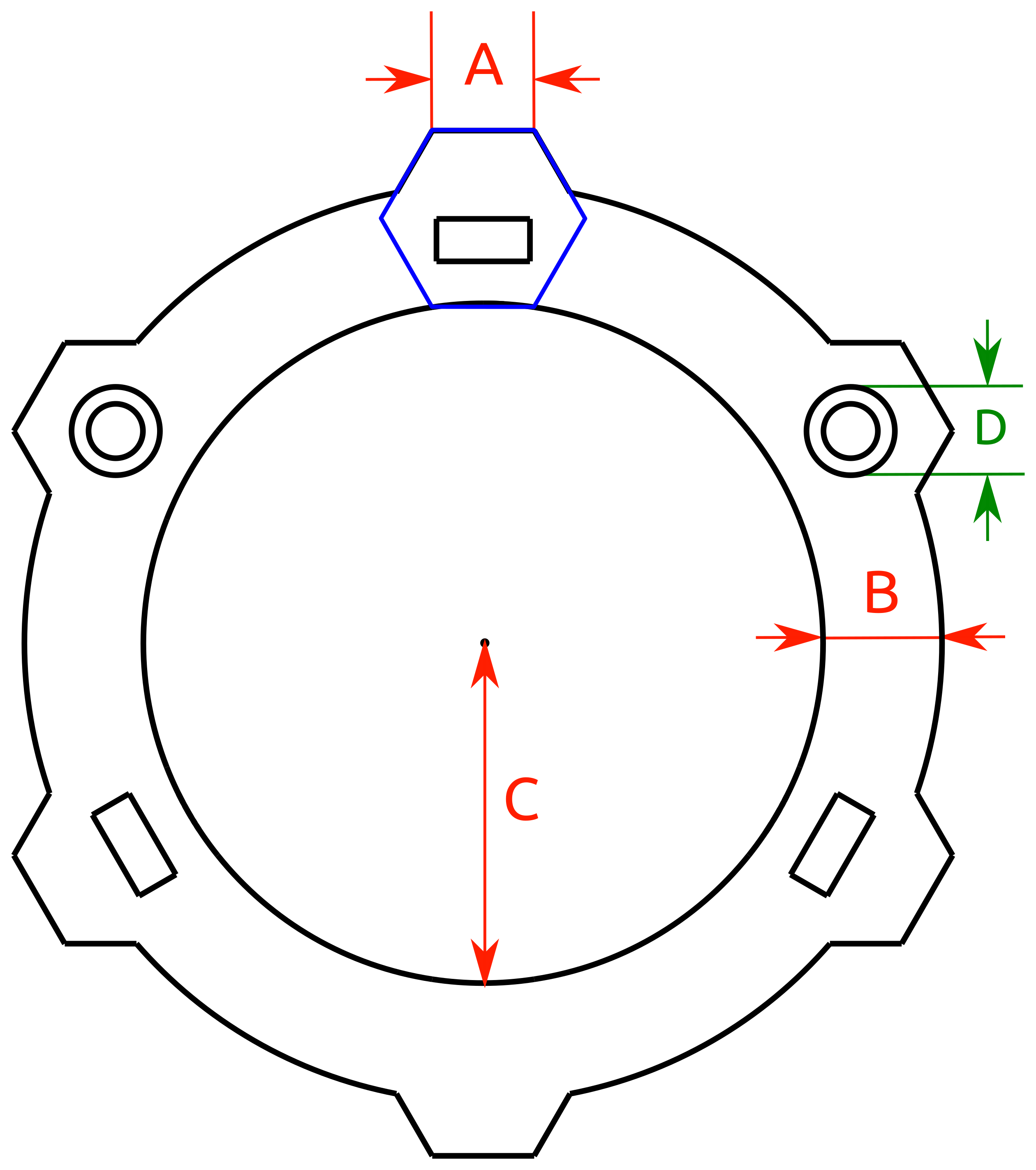 B : holderradius (19.9 mm)