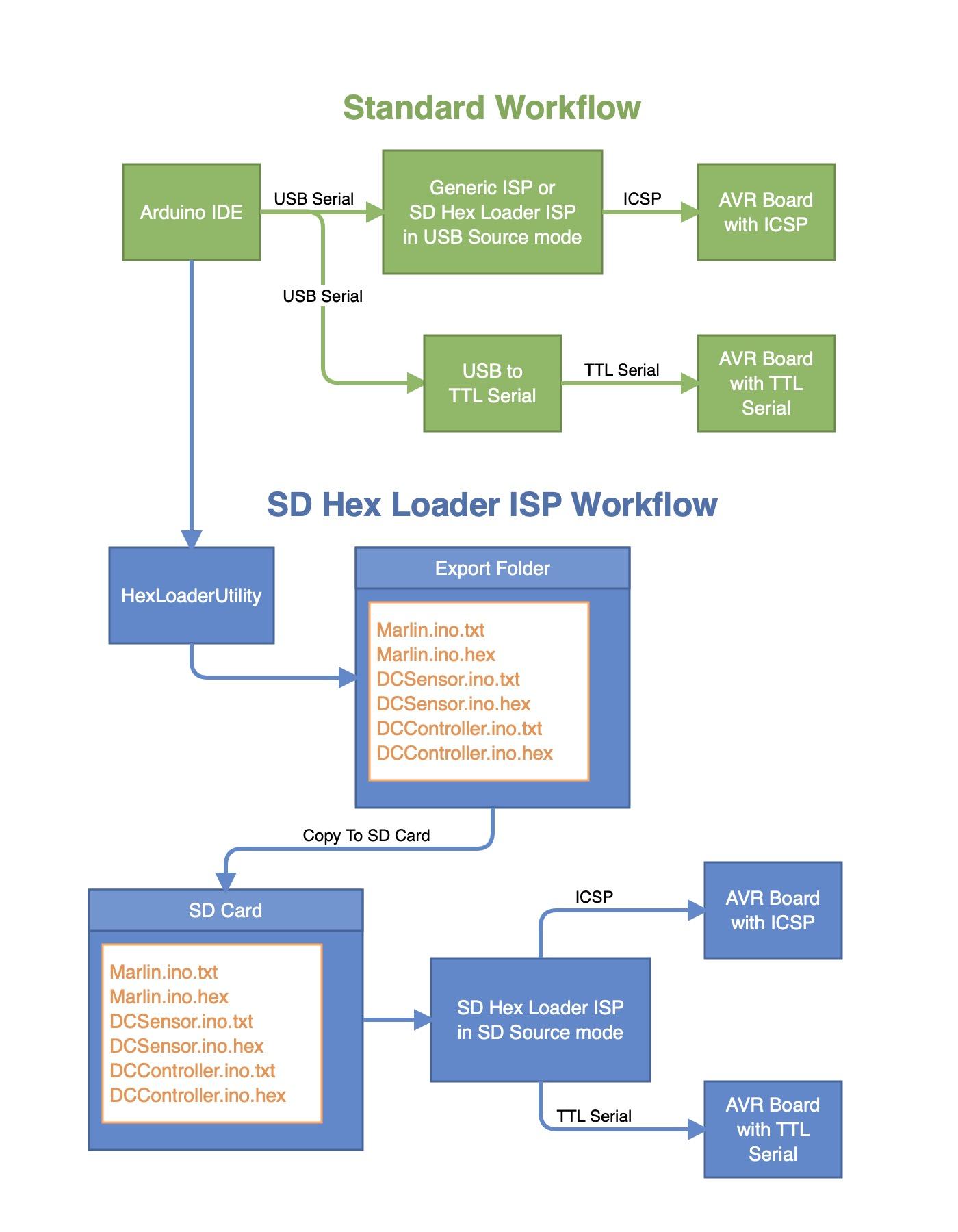 The two major classes used on the board to load a hex file are AVRStreamISP and SDHexSession.
