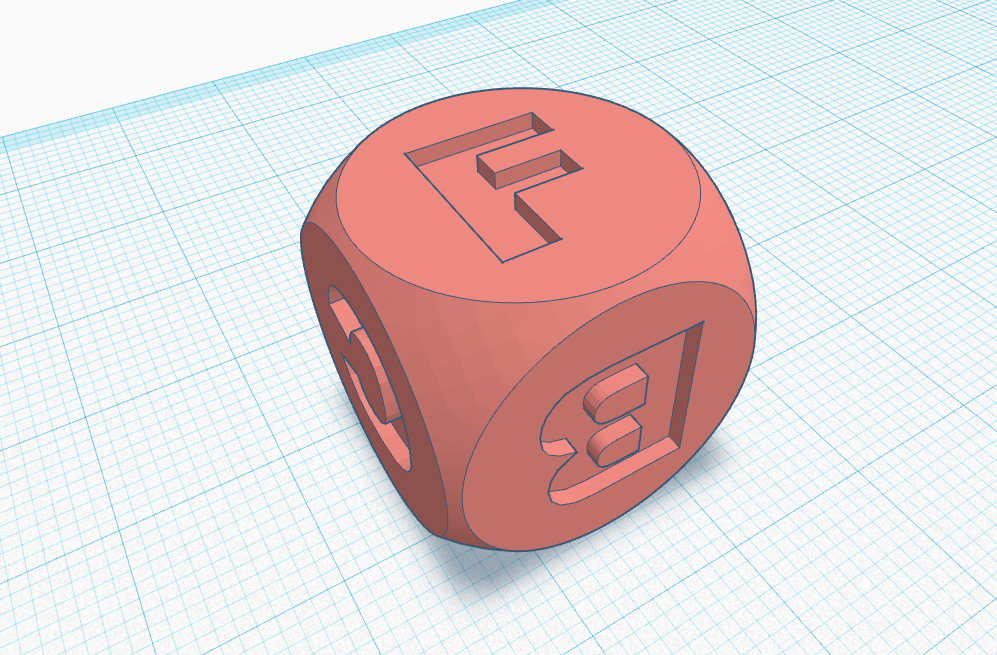 My daughter was playing with my husbands DnD dice and I thought it would be fun to make a set for her to play with! I thought she would have more interest in a set of dice with letters and pictures on them rather than normal dots, so this will show you how I've made my set along with the files to print your own. These are really easy to make using Tinkercad and I used JON-A-TRON's tutorial.
