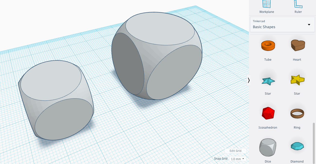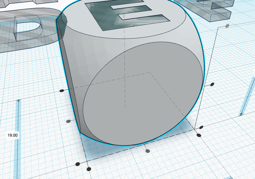 I used the dice shape that is already in the Tinkercad basic shapes menu. You could also use a cube and mess around with the edge curves but the premade dice shape is so nice, I just went with that.