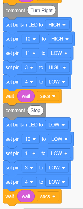 You can duplicate the whole block so far since we want to stop after turning. Right click on the "Go Forward" comment and paste at the end of the code.