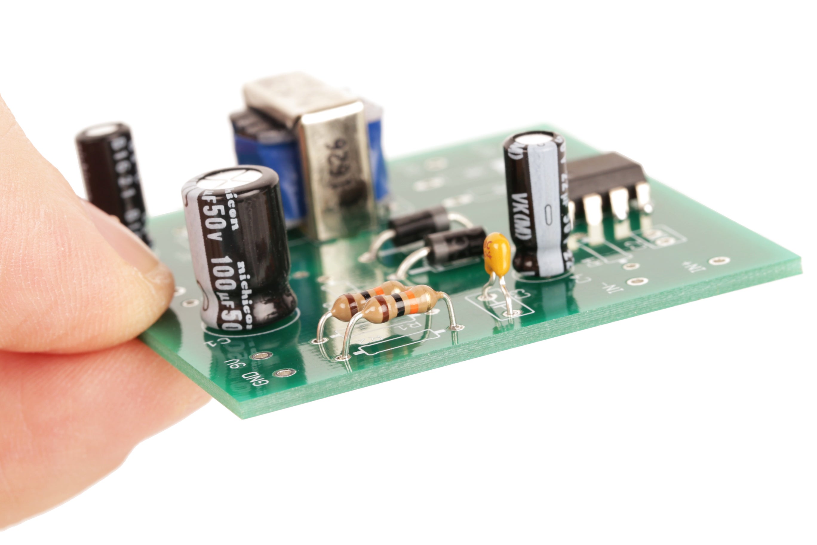 The final components I attach are those that are external to the board itself. Obviously, not all circuit boards have parts external to it, but many do.