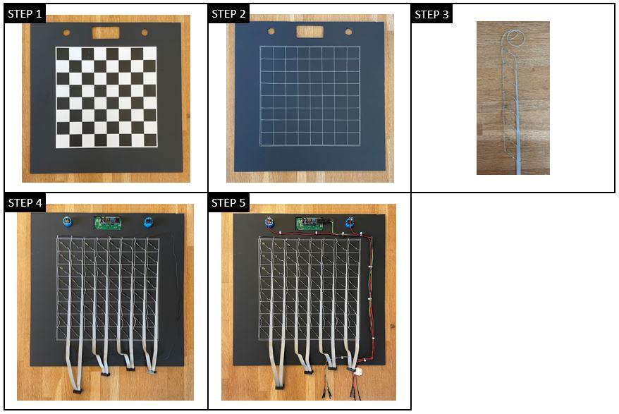 - Assemble the 8 sets of the 8 reed switches by means of ribbon cable. The distance between the reed sensors shall be corresponding to the chessboard square size.