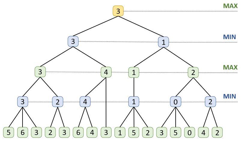 The proposed AI is based on the Minimax concept, see step 6.
