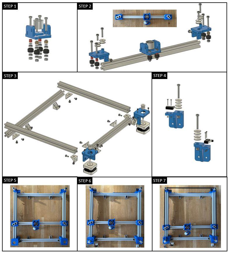 - Assemble the main frame. Ensure to have a good parallelism between the beams.