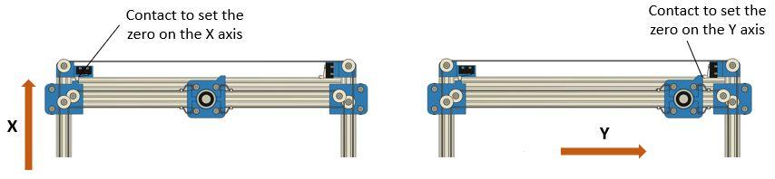 At the start-up, the X & Y coordinates of the trolley will be unknown, so at each commencement, the system needs to set the 0 for the X and Y axes. The setting consists in moving the trolley following the X and Y axes up to limit switches. The limit switches are fixed to the frame so that at each new start the 0 will be at the same location.