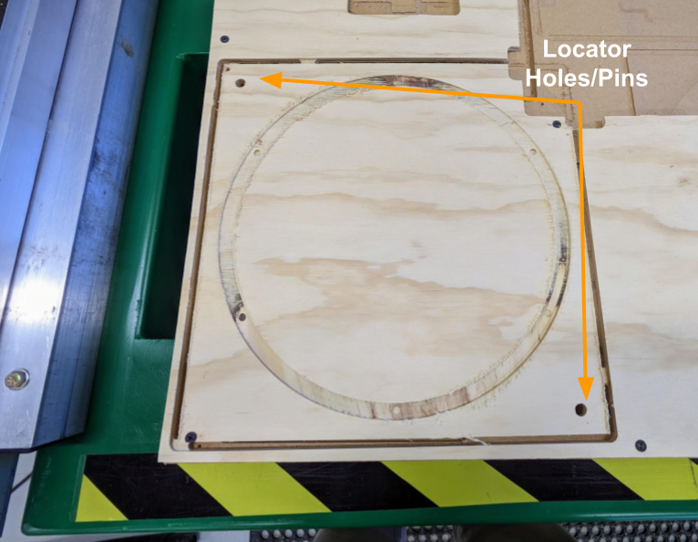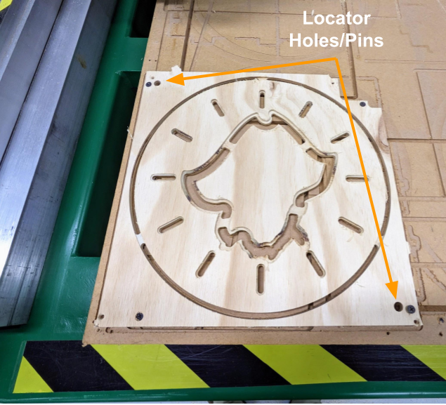I decided to create a couple of locator holes that I could use dowel rod pins to make sure my part stayed properly positioned during both front and back processes. It had been awhile since I had tried something like this but overall it worked pretty well.