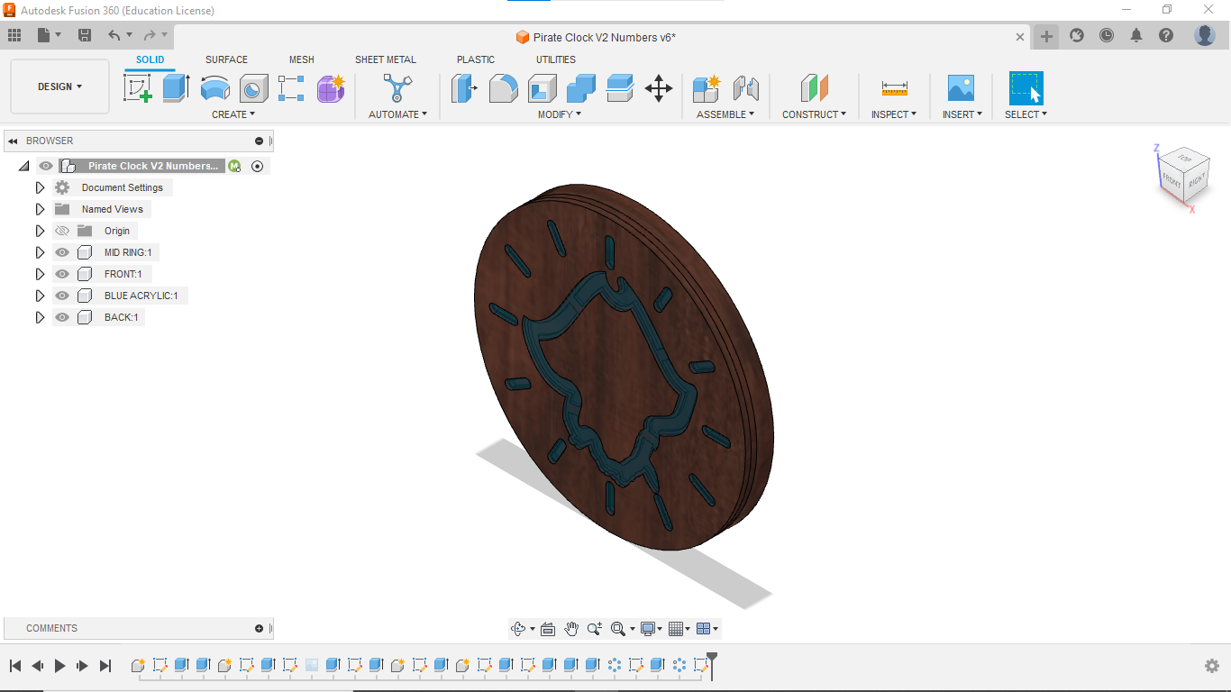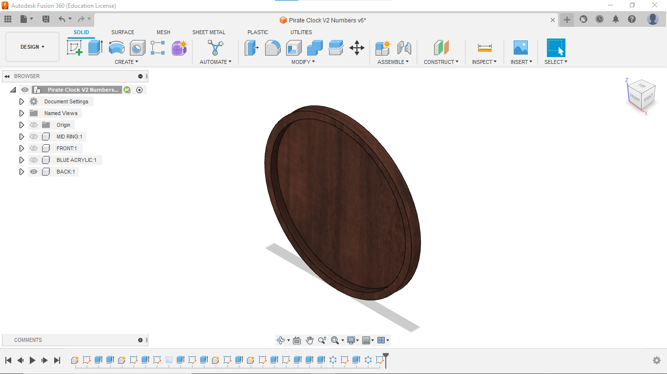 I skipped sketching ideas to save some time and jumped straight into designing on my laptop. I teach CAD with Fusion 360 for all of my classes. Before starting my 3D model on the computer I measured the wall clock from my other room as reference. I didn't want to make my clock much, if any, bigger than the one I had before. The clock measured 12" in diameter and 1-5/8" thick.