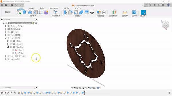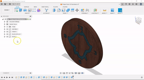 Besides a little charring from the laser, both the clock faces turned out pretty well! I didn't like the font for the numbers from Fusion so I changed that up in our laser cutter software before cutting it out.