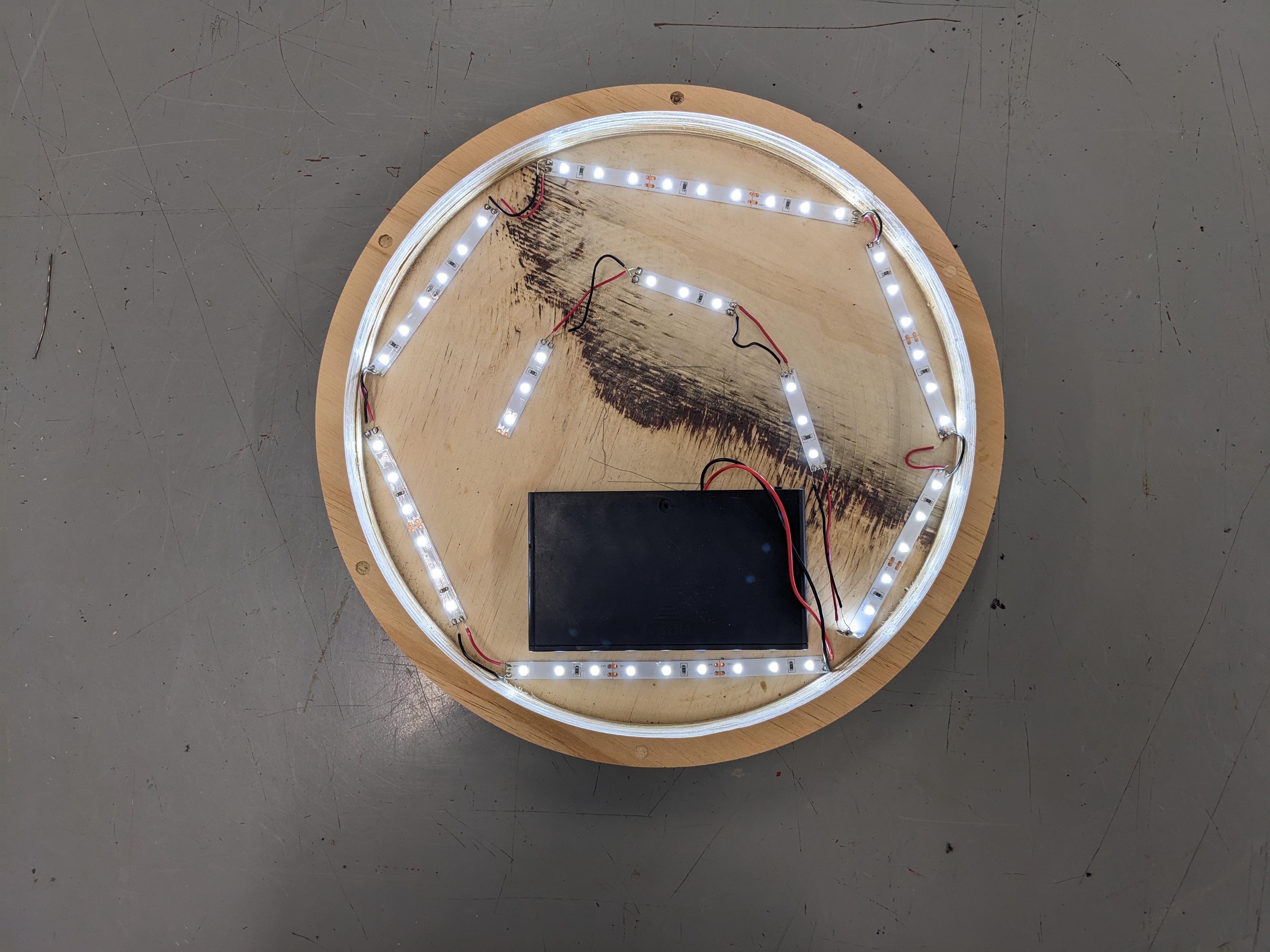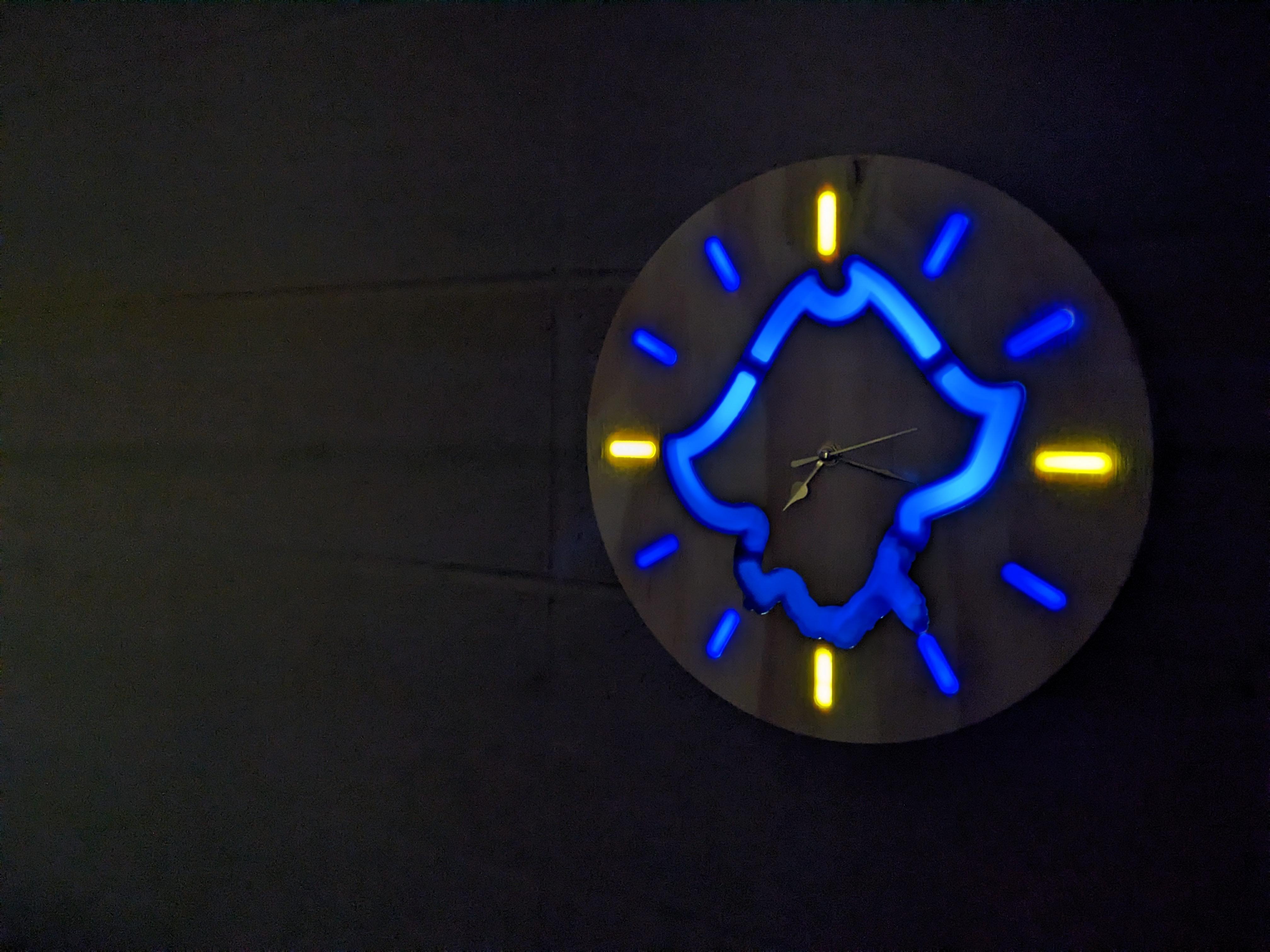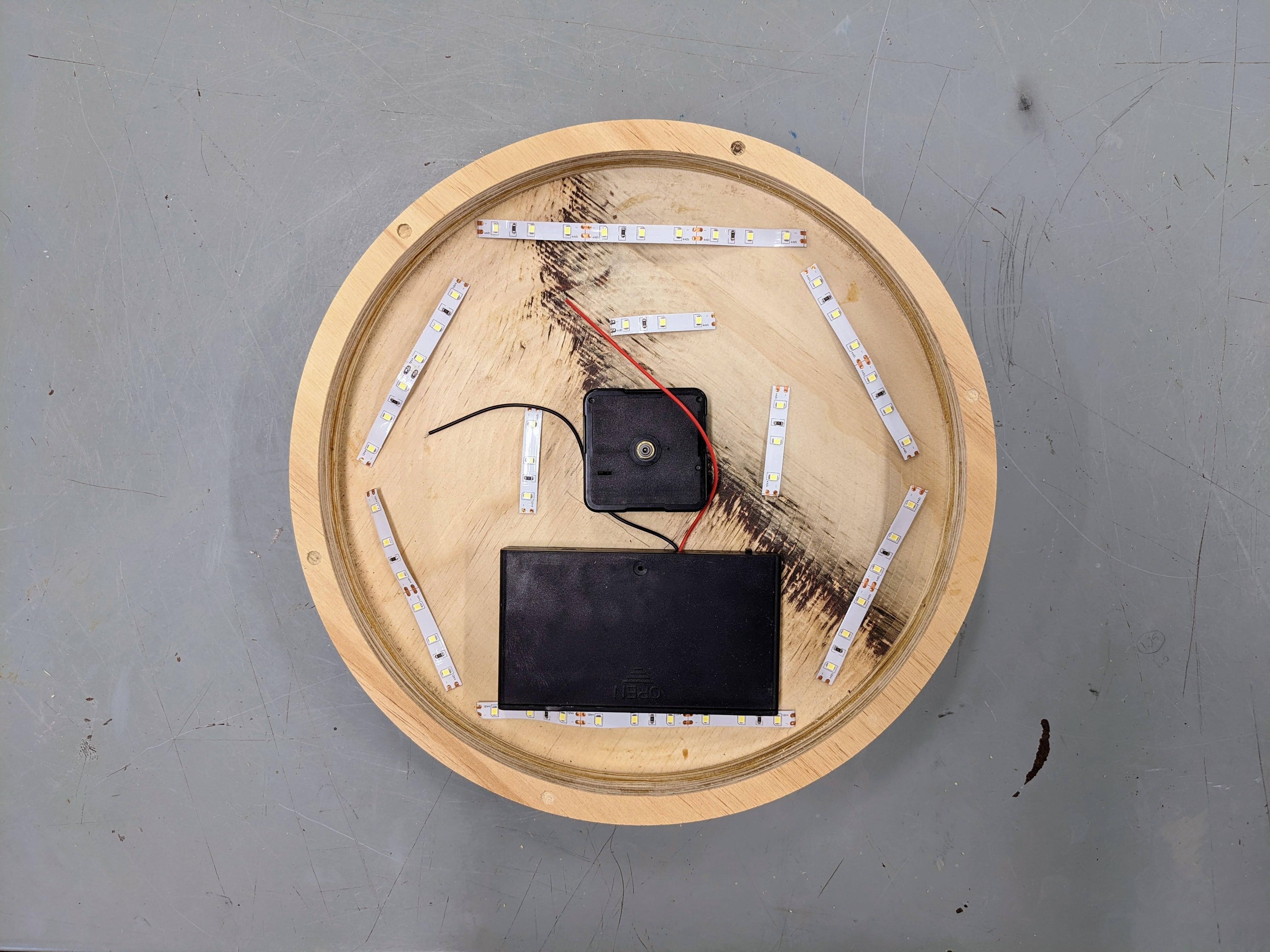 If I had more time for this build I would absolutely create this out of some nice hardwood, maybe a cool looking cherry. Other items I would address would be adding in an exterior switch that would allow me to turn the LEDs on and off without having to take the face of the clock off. And lastly, either purchase or figure out a way to illuminate the hands of the clock so you could still read the clock in the dark.