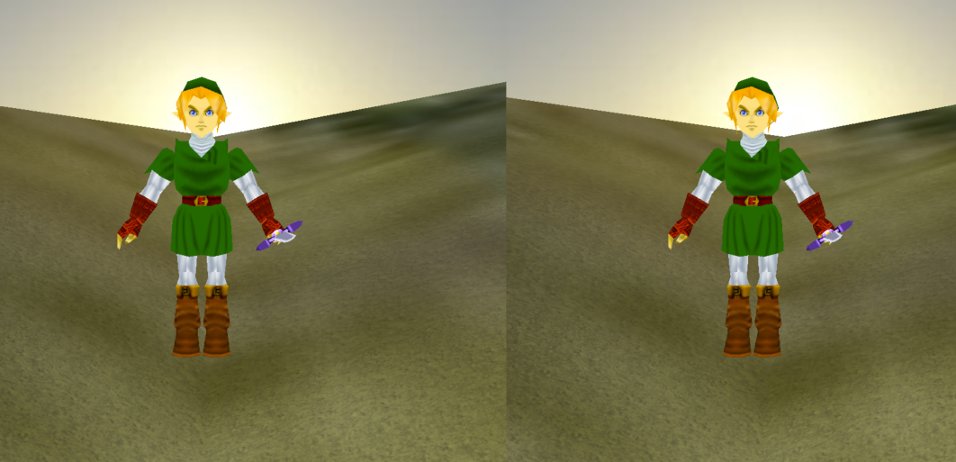 If you are running Pi3d on a Raspberry Pi, you should be careful with the complexity of the object. The more vertices and complex textures it has, the more it will slow the program down... And if you want to use the VR on a Raspberry Pi 3, we are going to have to forget all the complex forms :-( That's why I chose Link from Nintendo 64 and not the one for Wii (on the picture above).
