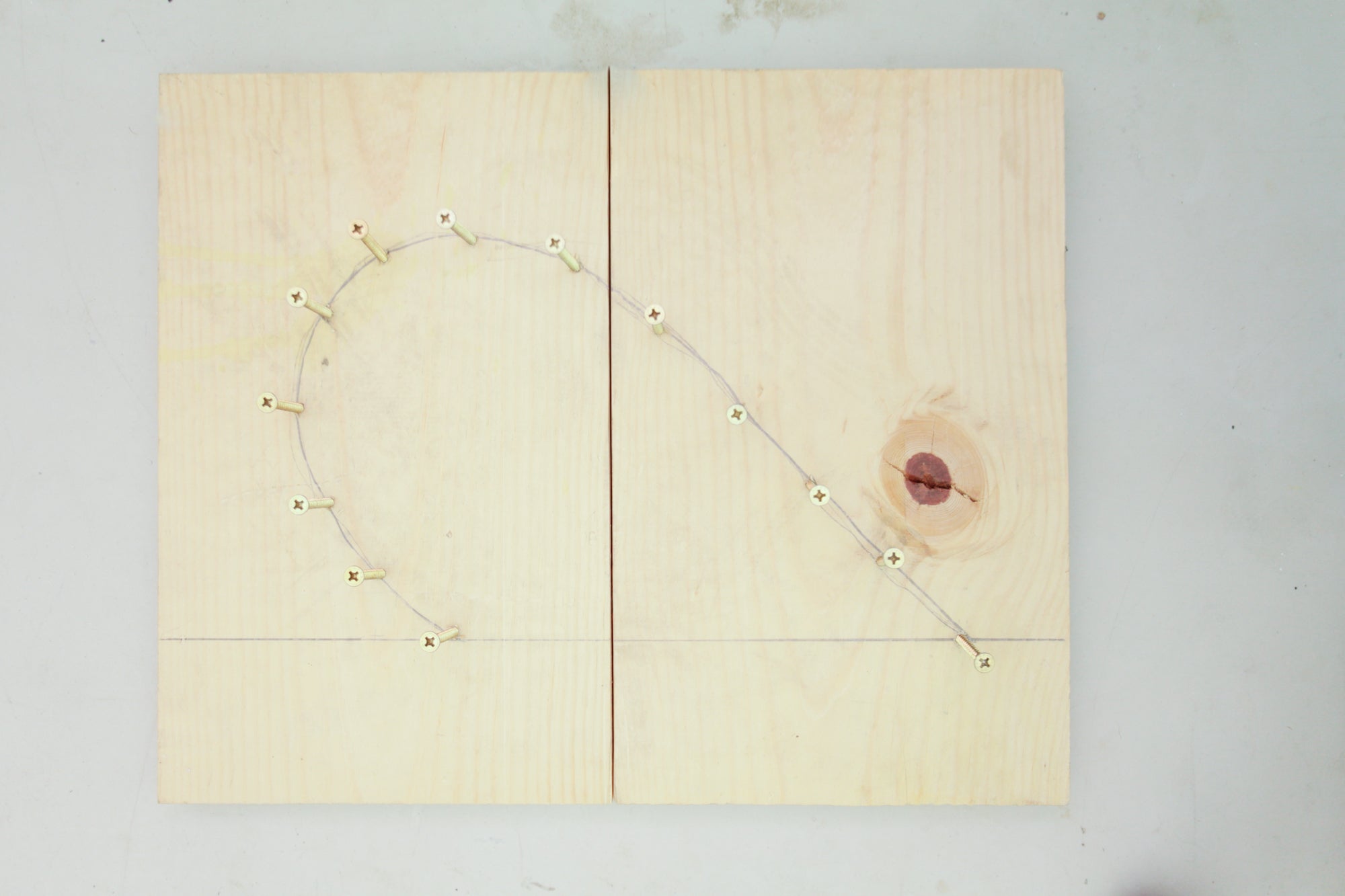 Working around the perimeter of your shape, drive screws that act as a guide for your heated pipe to form to. Drive extra screws near tight bends to prevent kinking or misshaping.