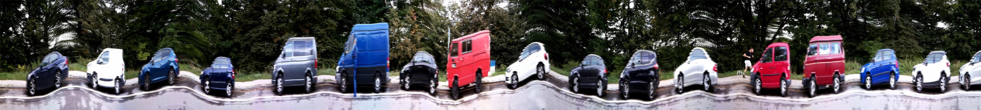 If you want to tweak the code for varying and playing with the result you can through the parameters explained above. Because of perspective, objects further away move slower, than close objects. Therefore the stretched aspect of the result images will directly correlate with the distance with the object. So if you scan a lon object with constant distance, there is a set of parameter that will give you a 1:1 ratio in X and Y (for example the side of a street). Making scans of objects further away (like landscape) is hard/not possible, since the slightest move of the bike will let the camera aim at a very different spot if it is far away.