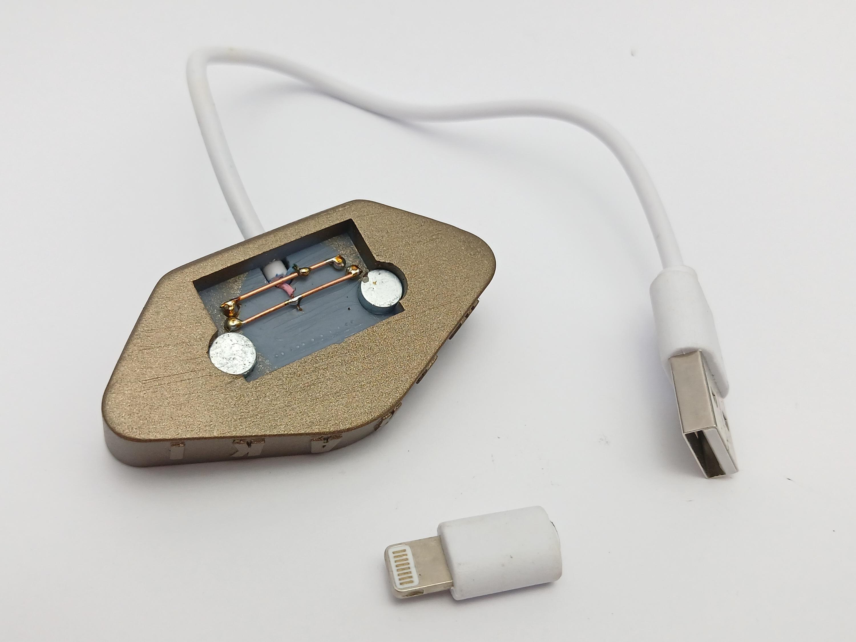 When finished I like to just pot the entire cavity of the dock with some hotmelt glue, this protect the charging cable connections and also adds some weight.