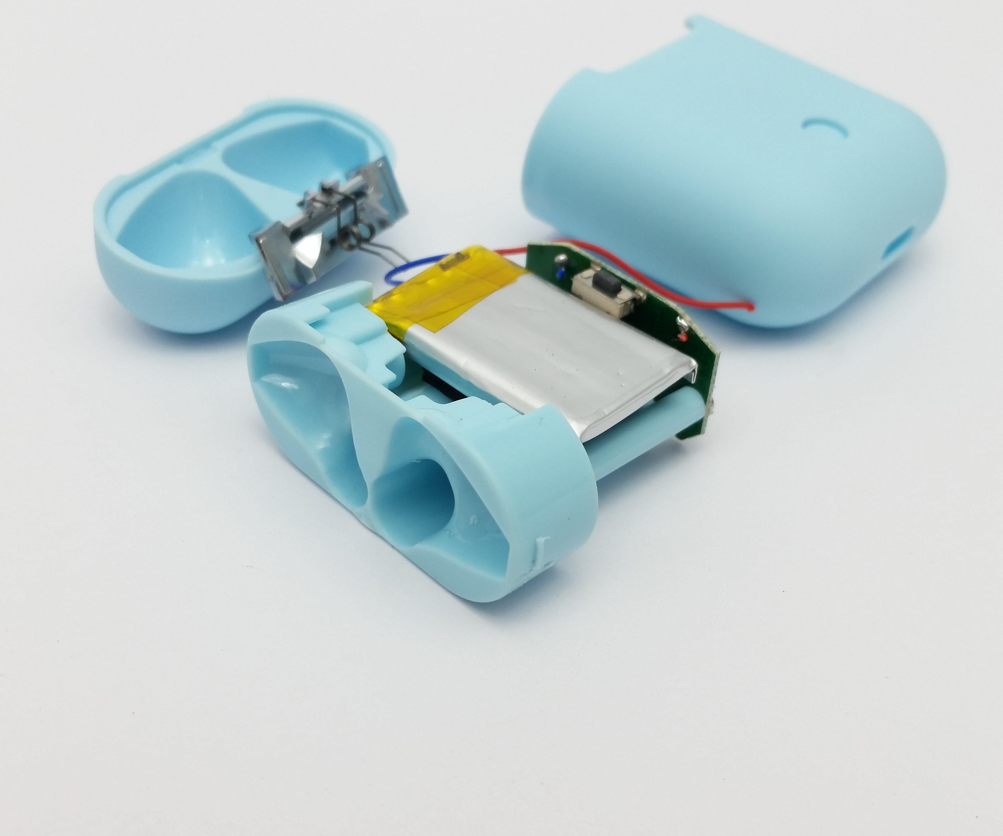 The charging case is held together with two clips on the side, as we won't use the case again I usually just break the two edges and slide the electronics out as it is nearly impossible to get it out without damaging the case.