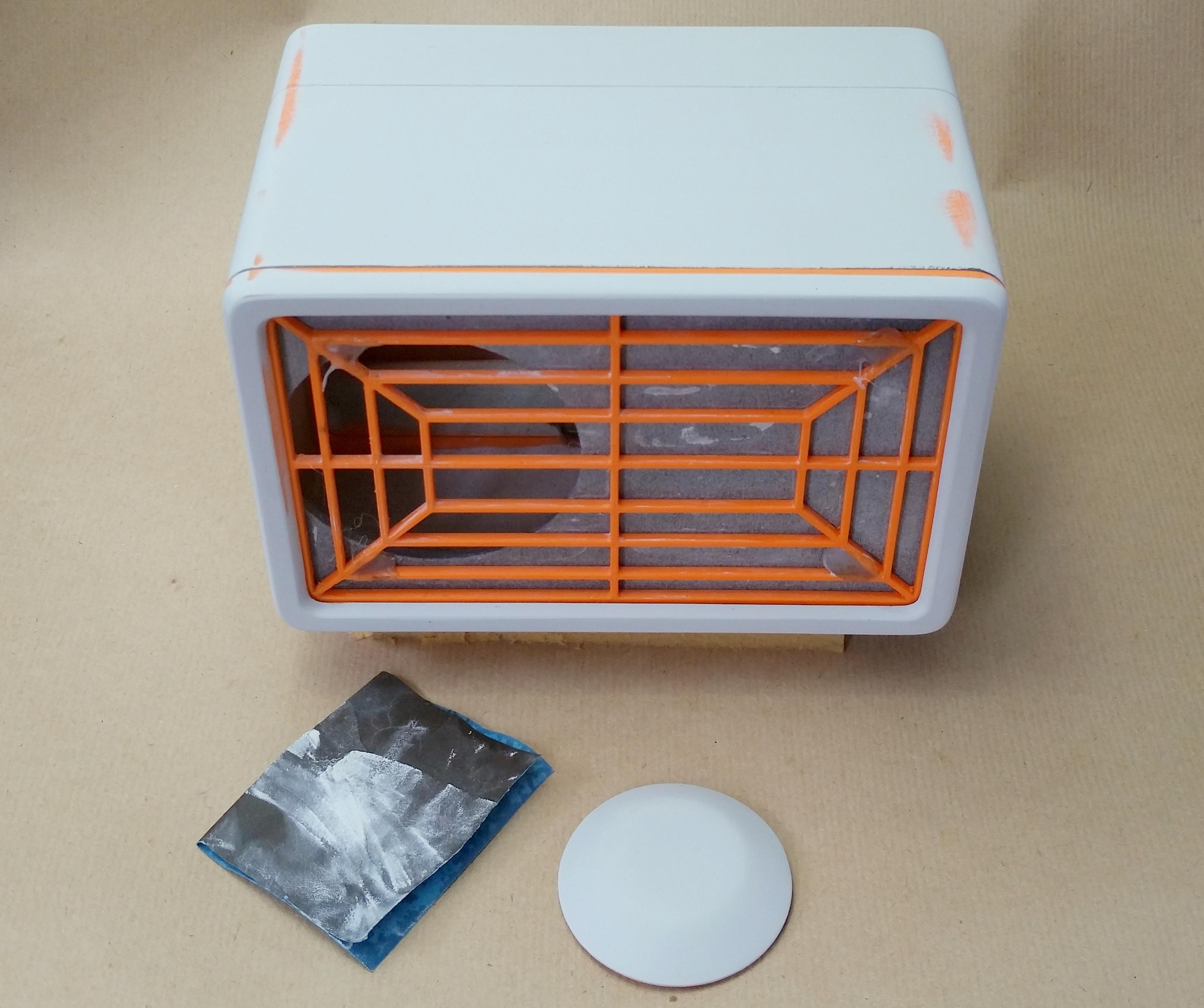 To finish off the aesthetics of the prototype I covered the front mesh in black speaker cloth before inserting it into the bezel and attaching it to the front of the enclosure.