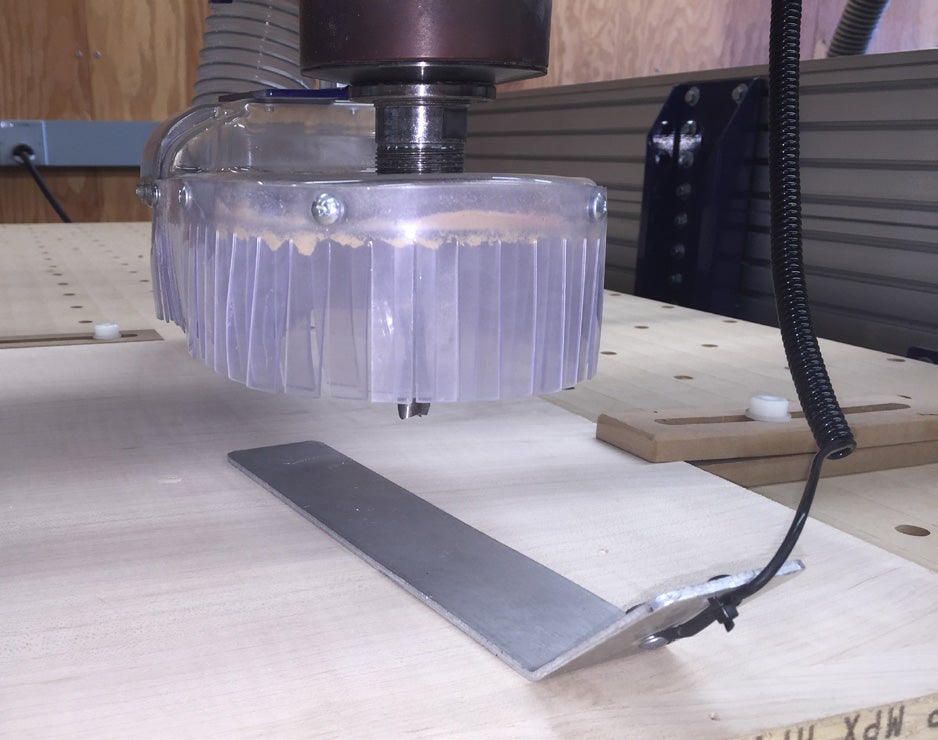 I you don't have a zero plate, you'll have to zero manually. To do this, just put a piece of paper down on the top of the stock, then nudge the spindle down until it touches it. You should be able to move the paper but feel a little resistance on it. This should give you a zero that's close enough to perfect that your toolpath will give you the results you want.