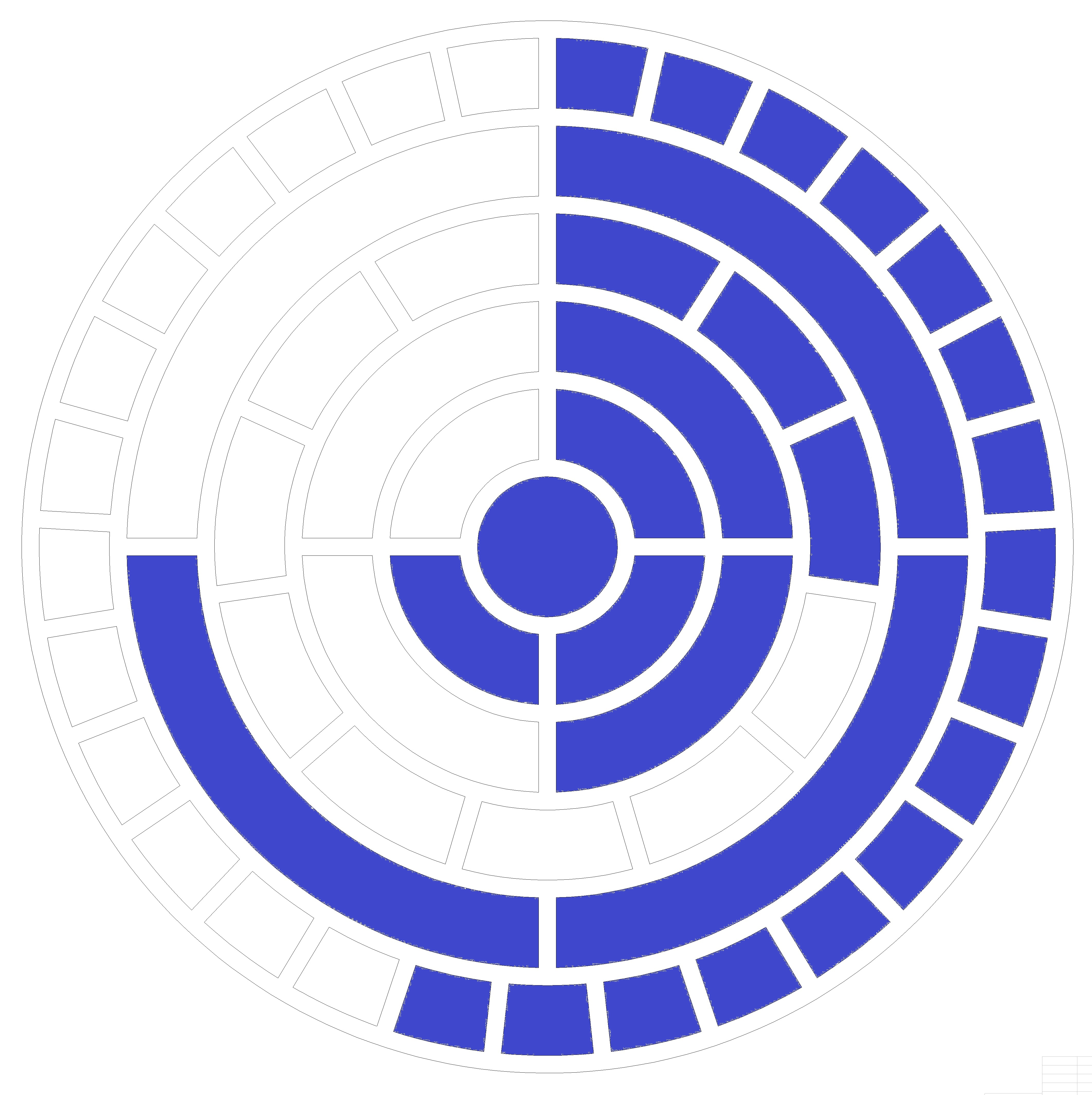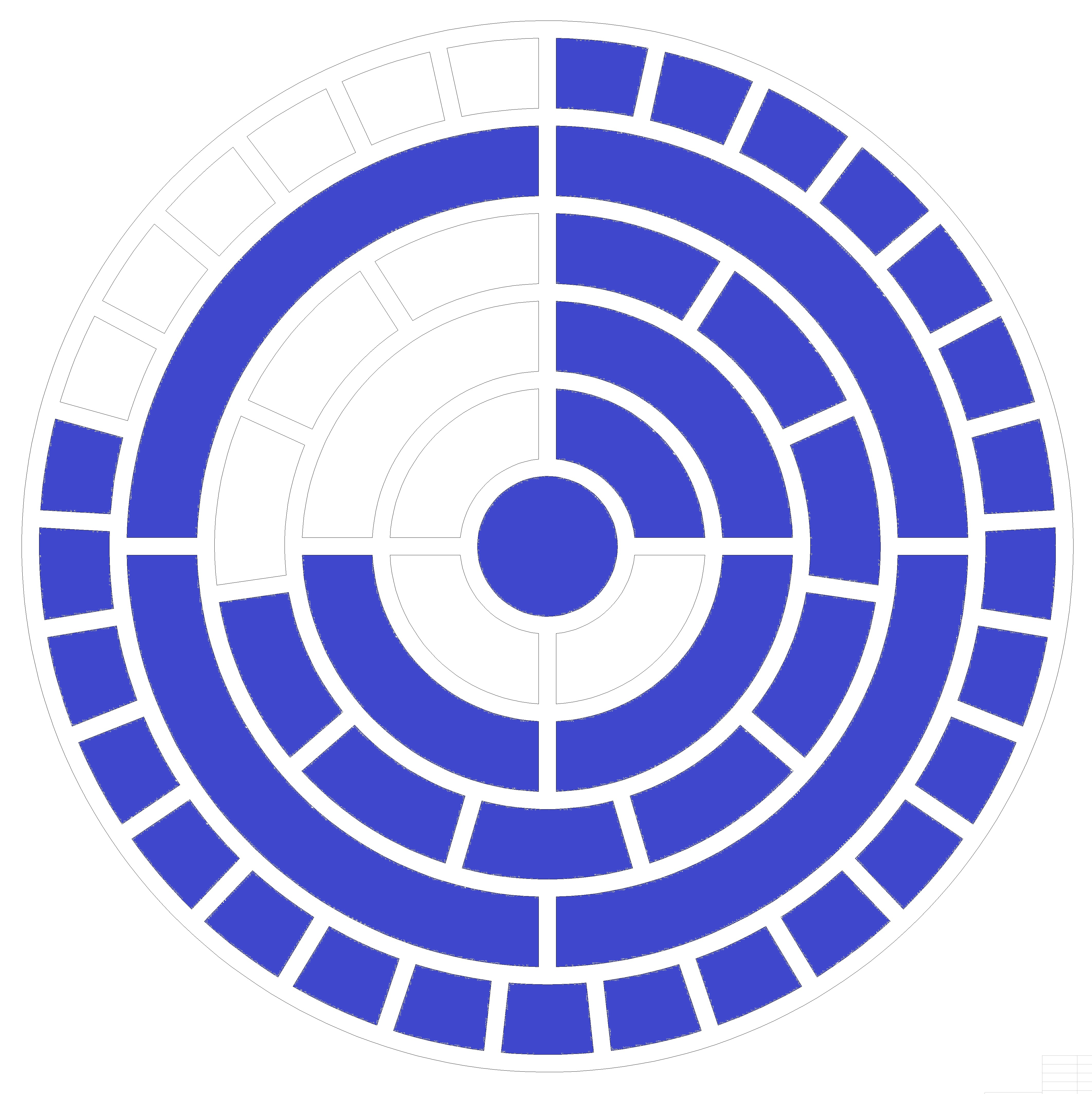 The clock is read from the inner circles to the outer. The inner ring of four fields denote five full hours each, alongside the second ring, also of four fields, which denote one full hour each, displaying the hour value in 24-hour format. The third ring consists of eleven fields, which denote five full minutes each, the next ring has another four fields, which mark one full minute each. Finally the outer ring of 29 fields denote even seconds with the light in the center blinking to denote odd (when lit) or even-numbered (when unlit) seconds.