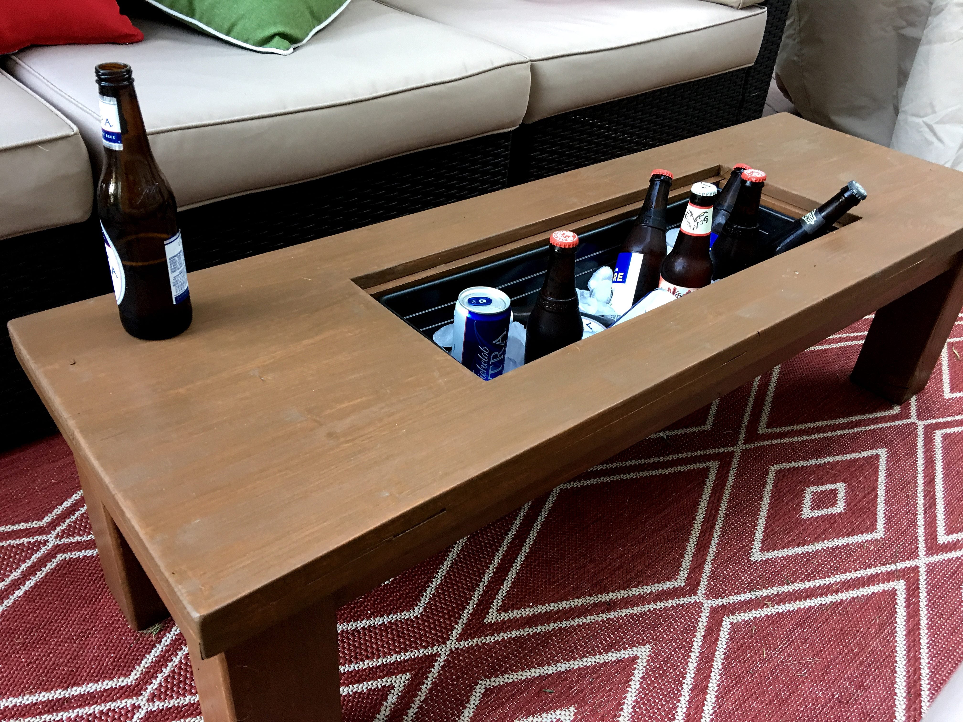 The construction result was a coffee/planter/beverage table. It fits the space, it's great having somewhere to place your coffee or beverage, and staring at the plants growing out of the table induces a state of zen-like calm. When the sun goes down, the planter can be removed and filled with one containing ice and beverages to toast the end of another glorious day on planet earth. In winter, the lid covers the opening, waiting for the next spring and the opportunity to create a different look for the new season.