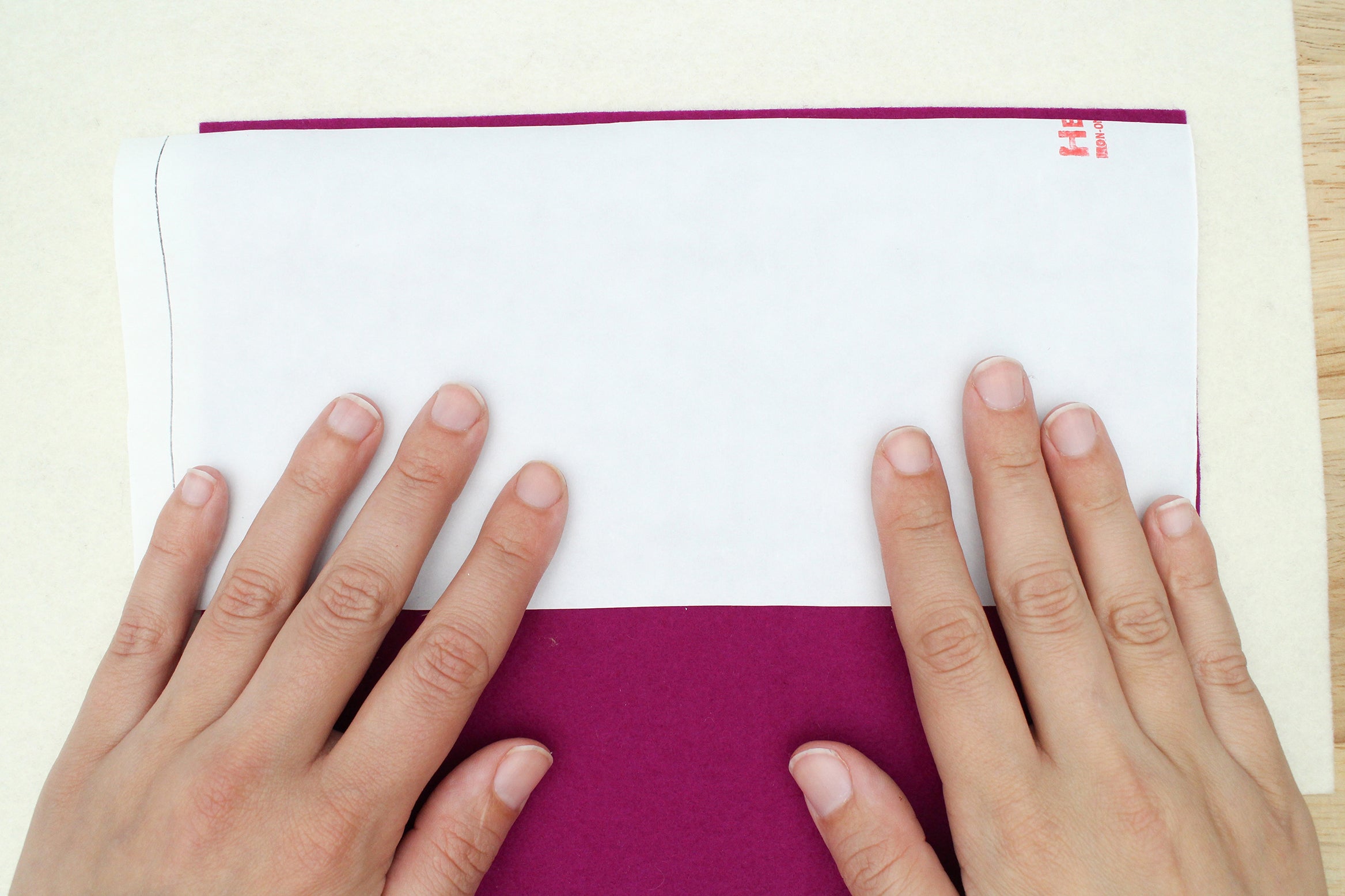 Heat up an iron to med-high heat. Place the adhesive side down onto the fabric you wish to make iron-on. Place the hot iron on top of the paper and apply heat. Stay there for a second and then slowly move onto the next area. Apply enough heat until the adhesive sticks to the fabric and then let it cool completely. You now have iron-on fabric!