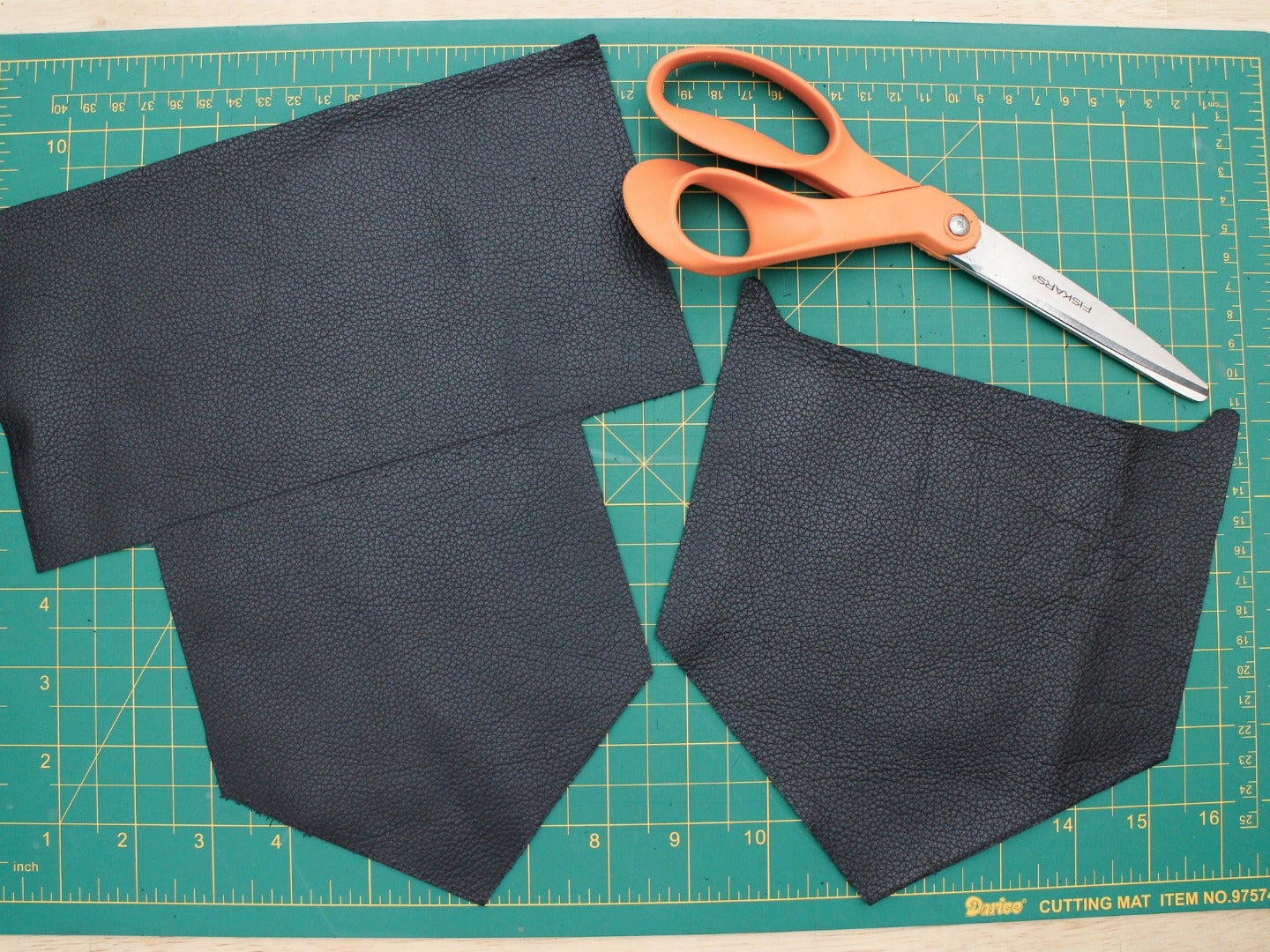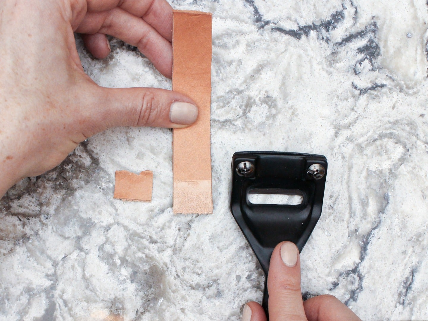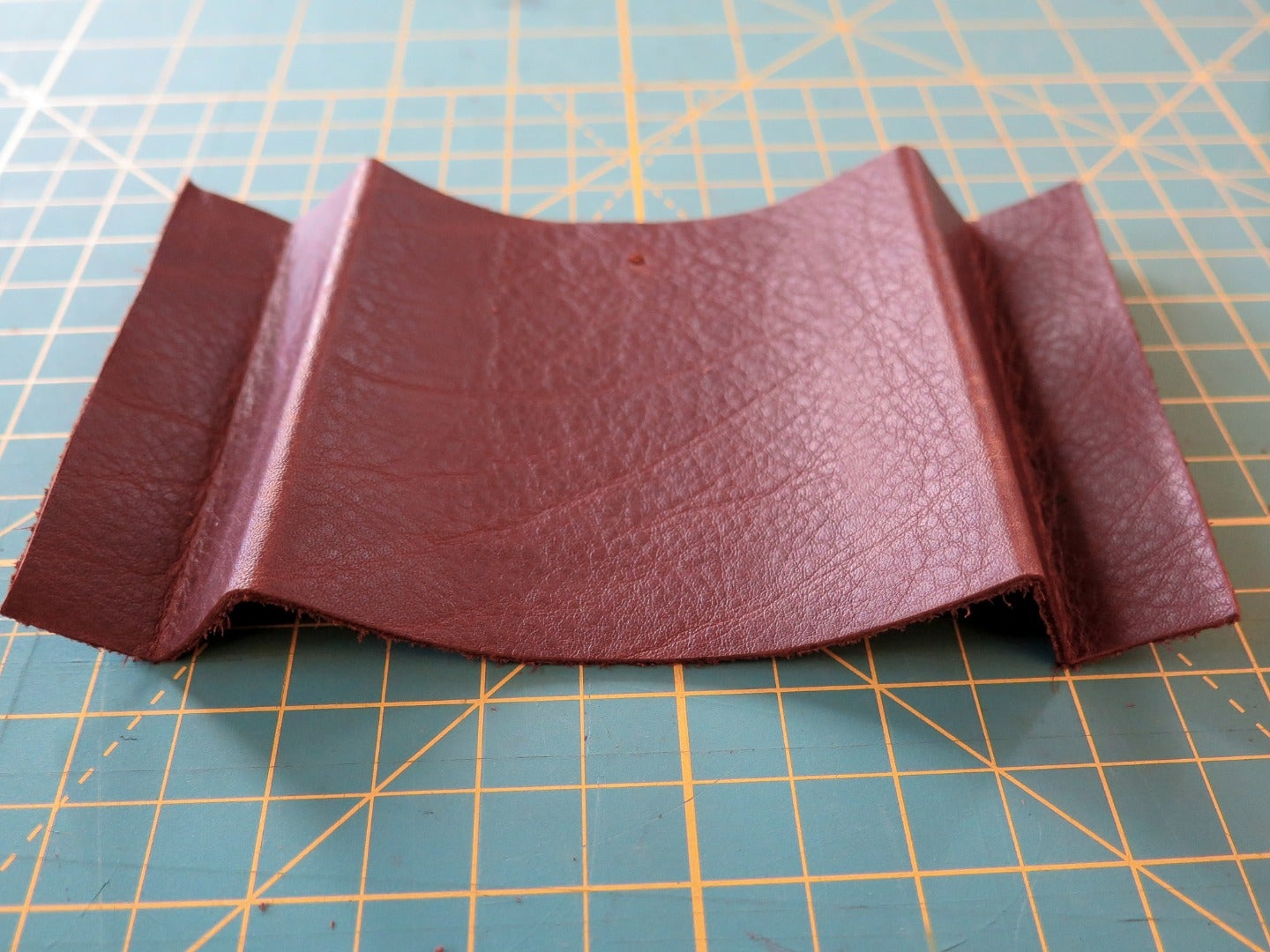"title": "fold the leather in half and cut on the fold",