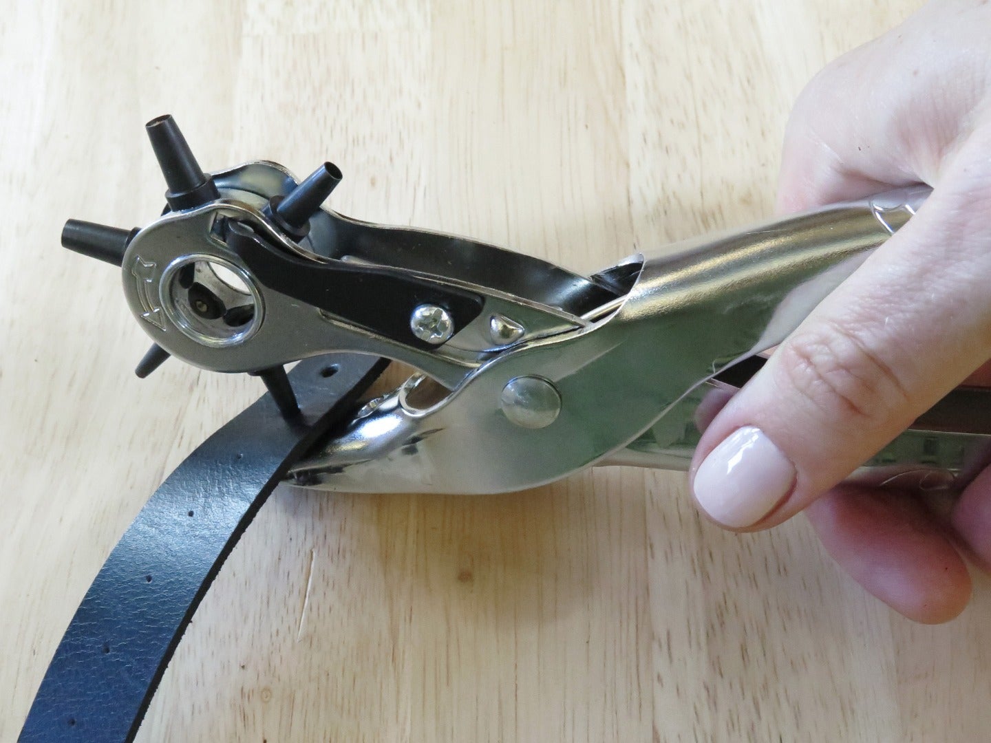 "question": "To create an oblong hole in leather, you should:",