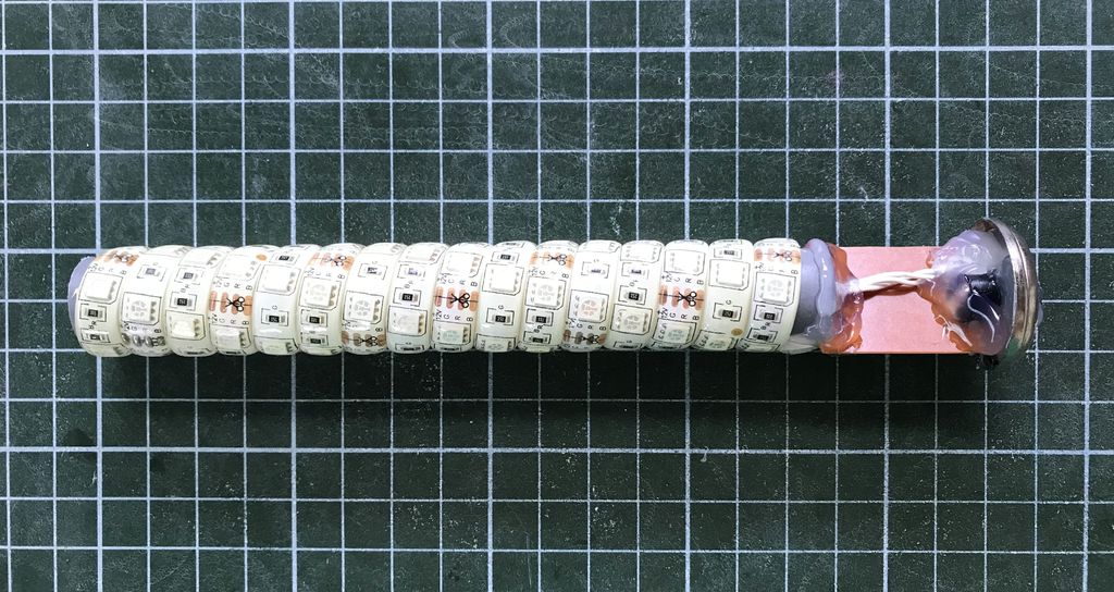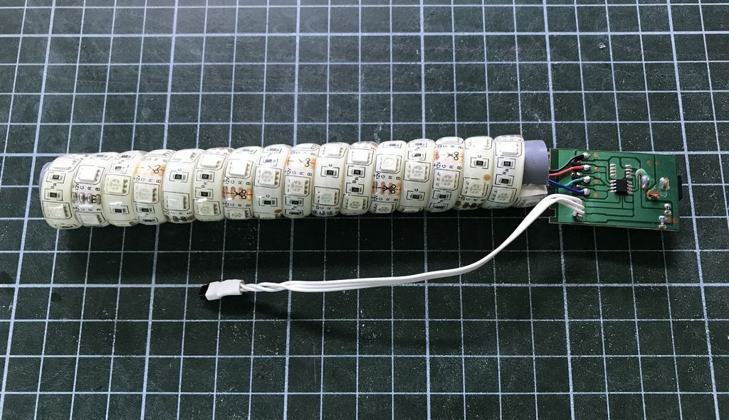 - I wrapped the LEDs strip around this PVC pipe and connected it to the header control pins of RGB control PCB.