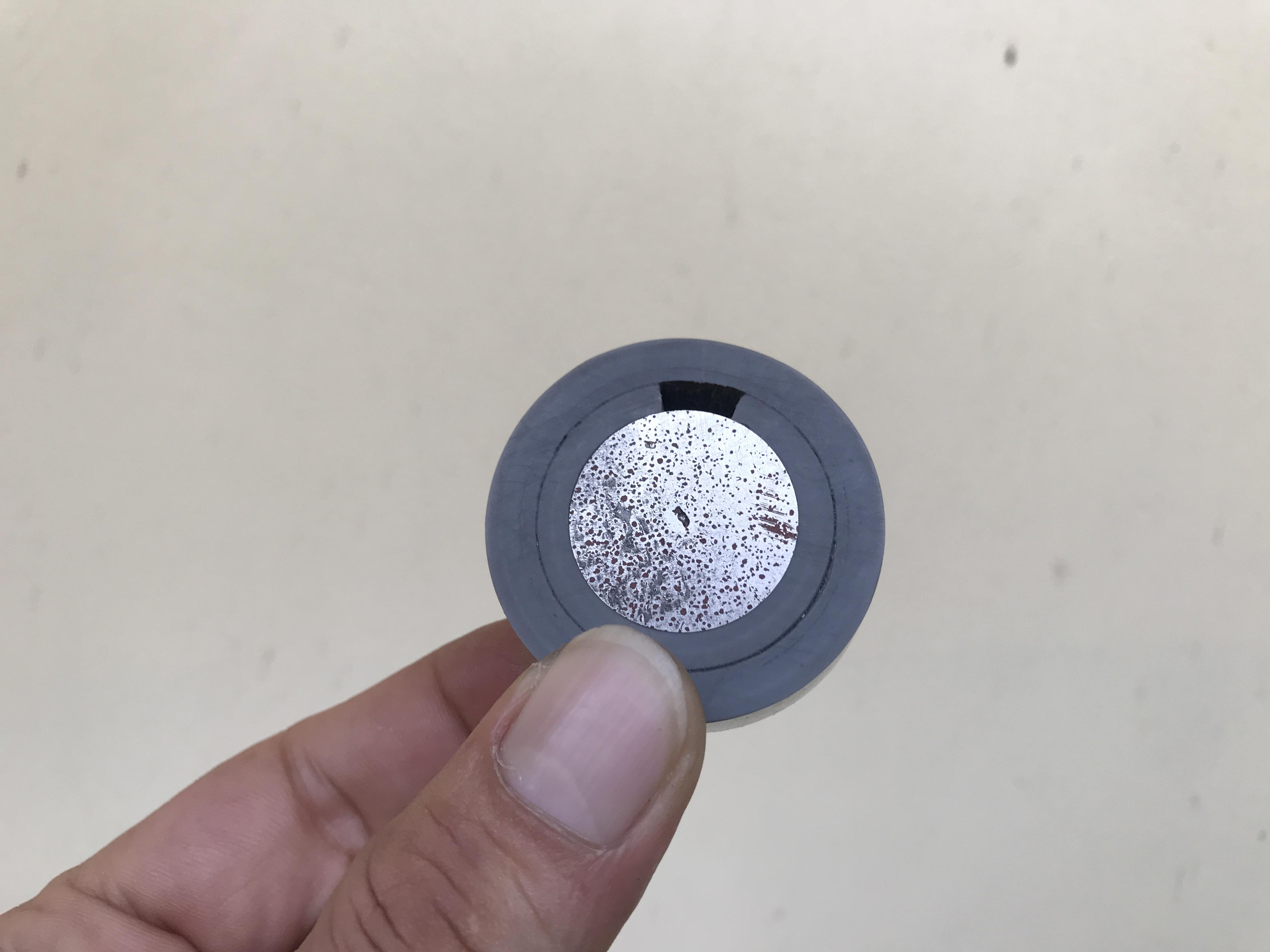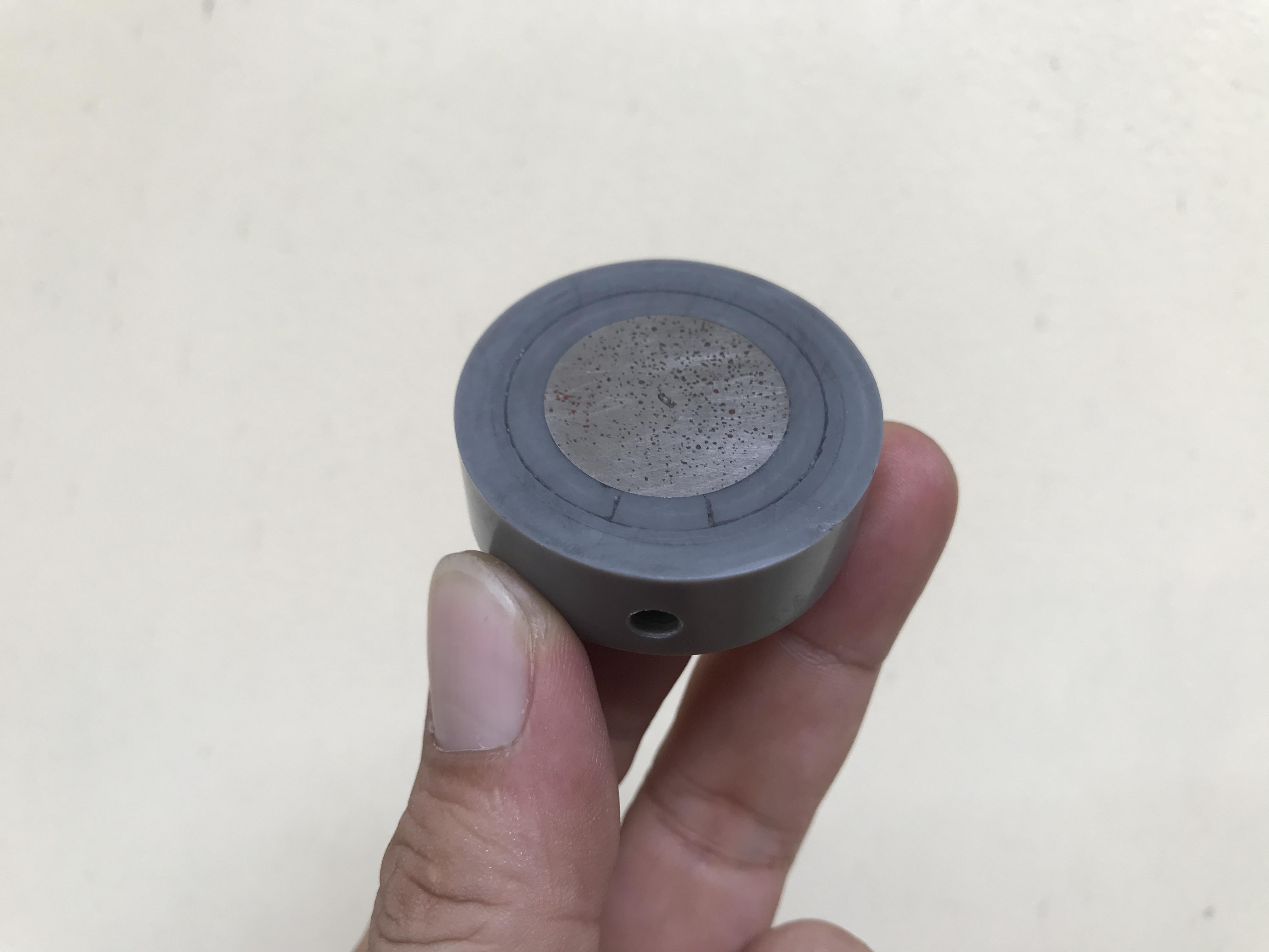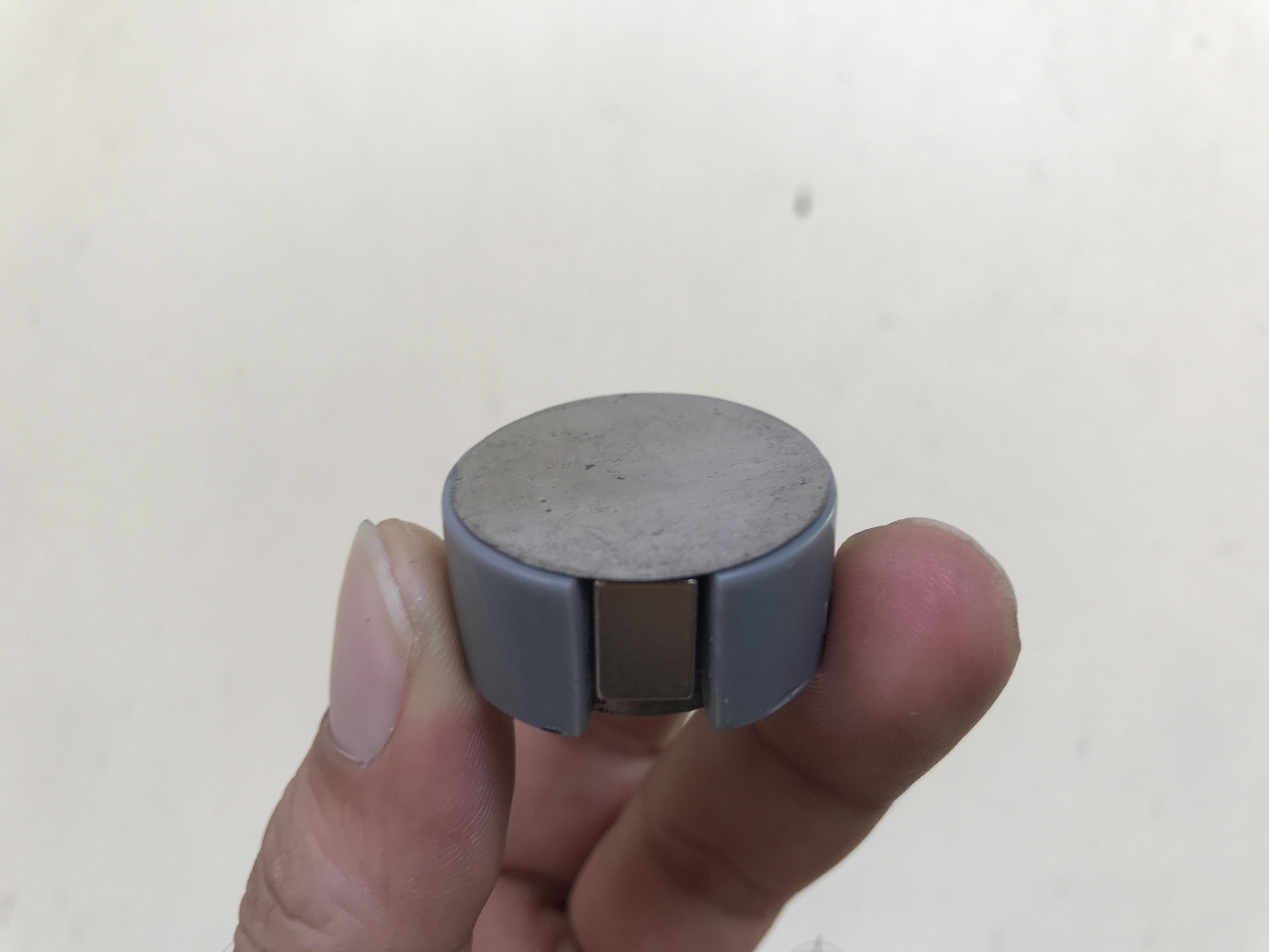 My round steel plate has a diameter 25mm, thickness 14.5mm. I cut a piece PVC fitting, 22mm inner diameter to wrap around the round steel. There is also a space left on the side to attach a magnet.