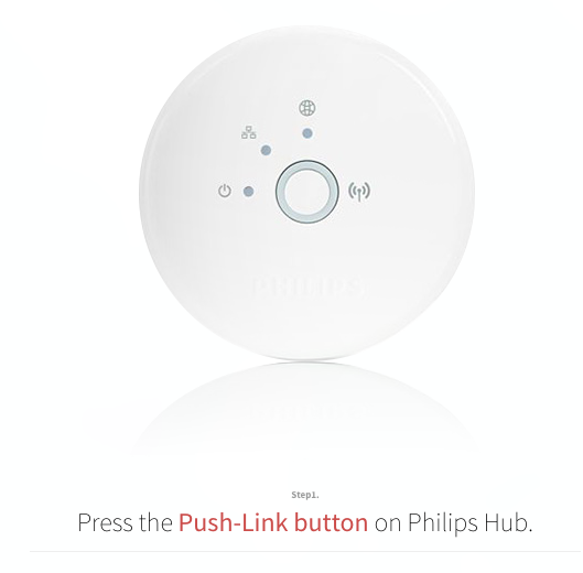 - Open the Philips Hue app. You will be requested yo press on the Push-link button of your Philips Hue bulb. As soon as you do that, the lights paired to your Hue hub will be integrated to your Prota Pi Hue app.
