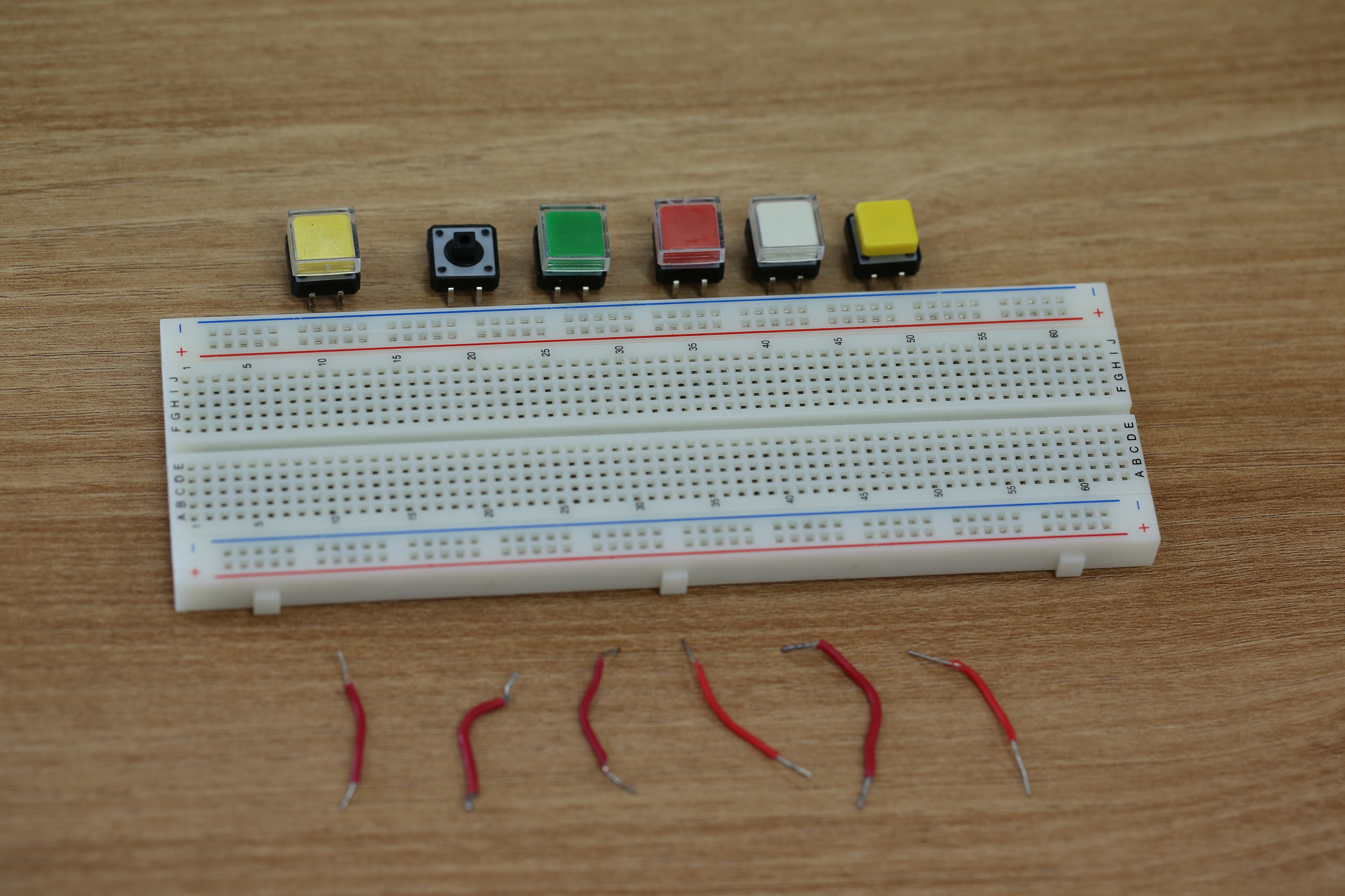 A breadboard is a board that helps you connect electronic components together and to your micro-computer Raspberry Pi. Using a big breadboard (830 points for instance) will allow you to have enough space to integrate many buttons. The more buttons you have, the more commands you can integrate with it, the more songs you can play at once.