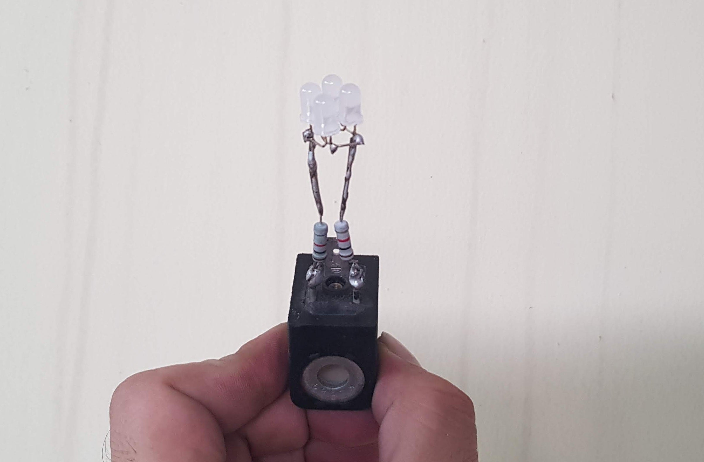 - Shape 1 with 4 LEDs, soldered to 1.7W valve coil.
