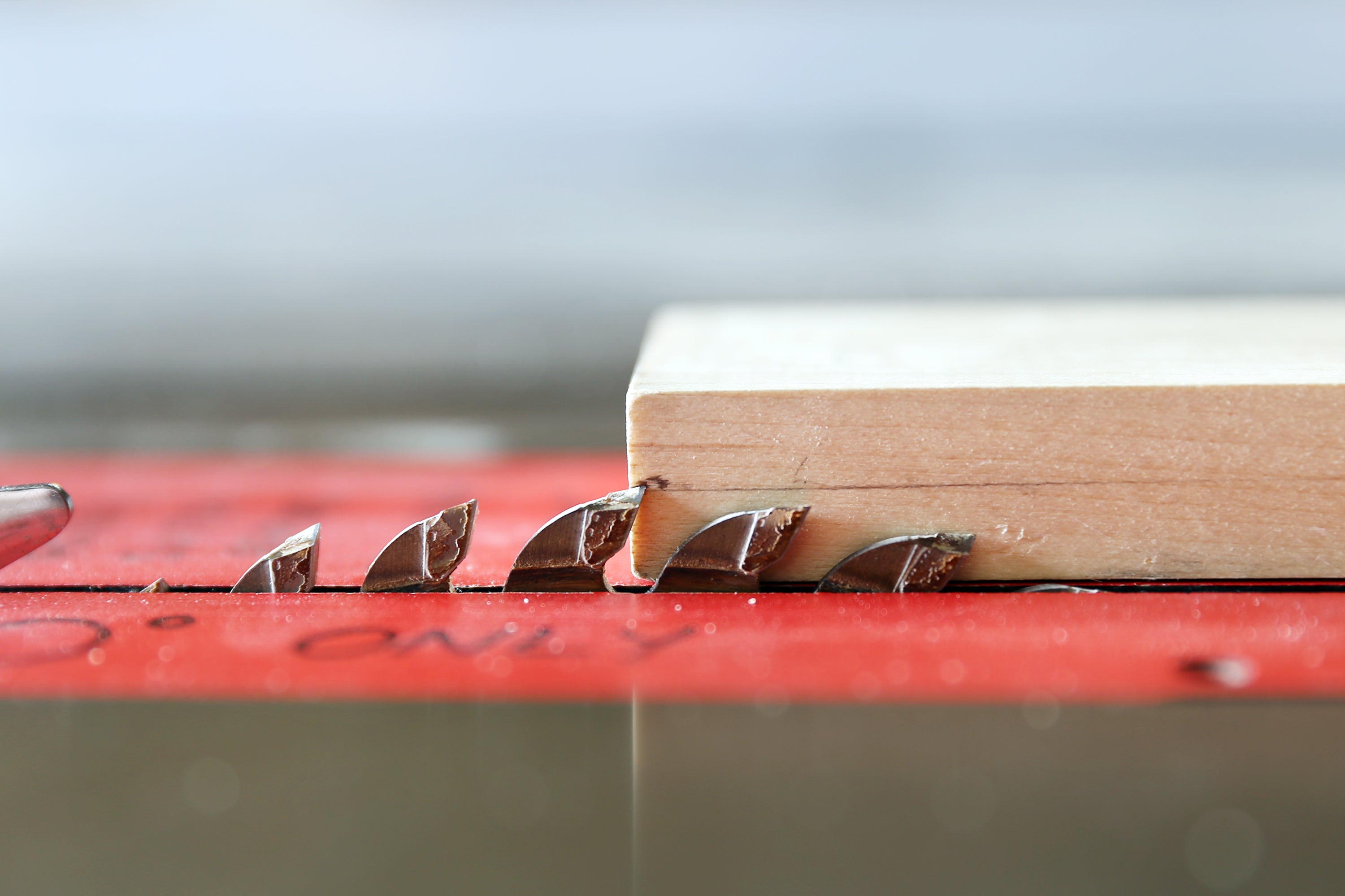 When cutting against the grain the fence will not be used, and it needs to be moved completely away from the blade. The mitre gauge is great for making cuts against the grain and should be used here.