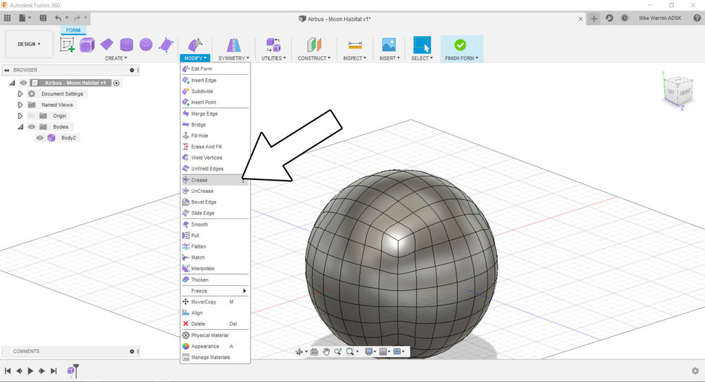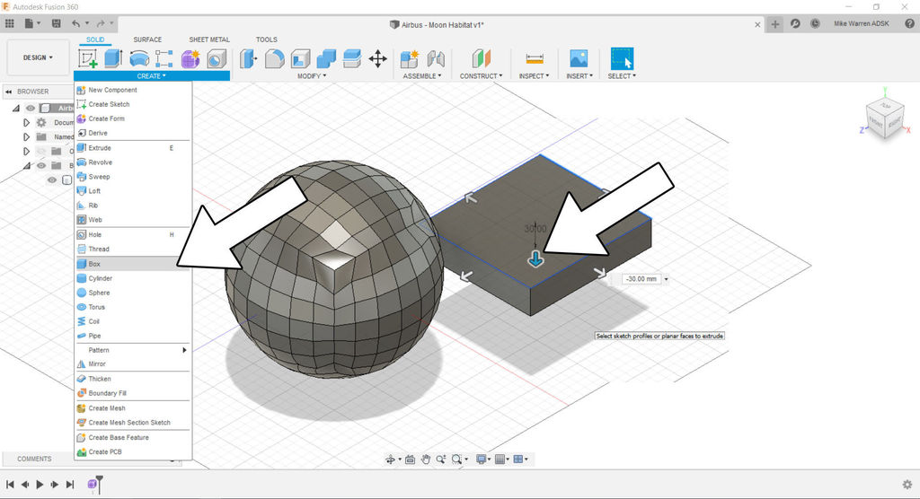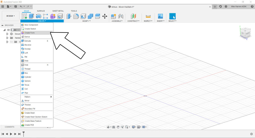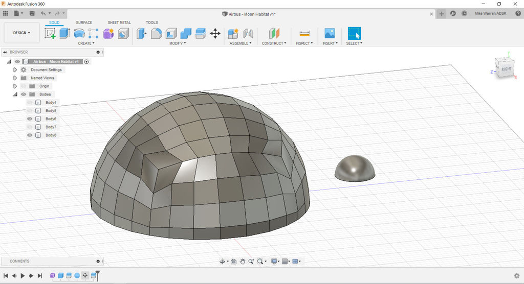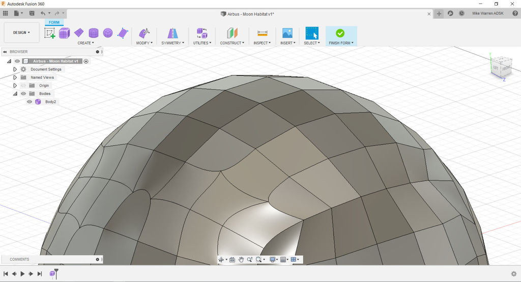 We'll start by using the mesh form function in Fusion 360 to make the dome shape of the habitat.