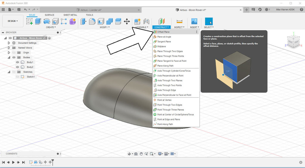 To slice off the sides we start by making a new plane for us to reference, this can be found in construct > offset plane in the toolbar.
