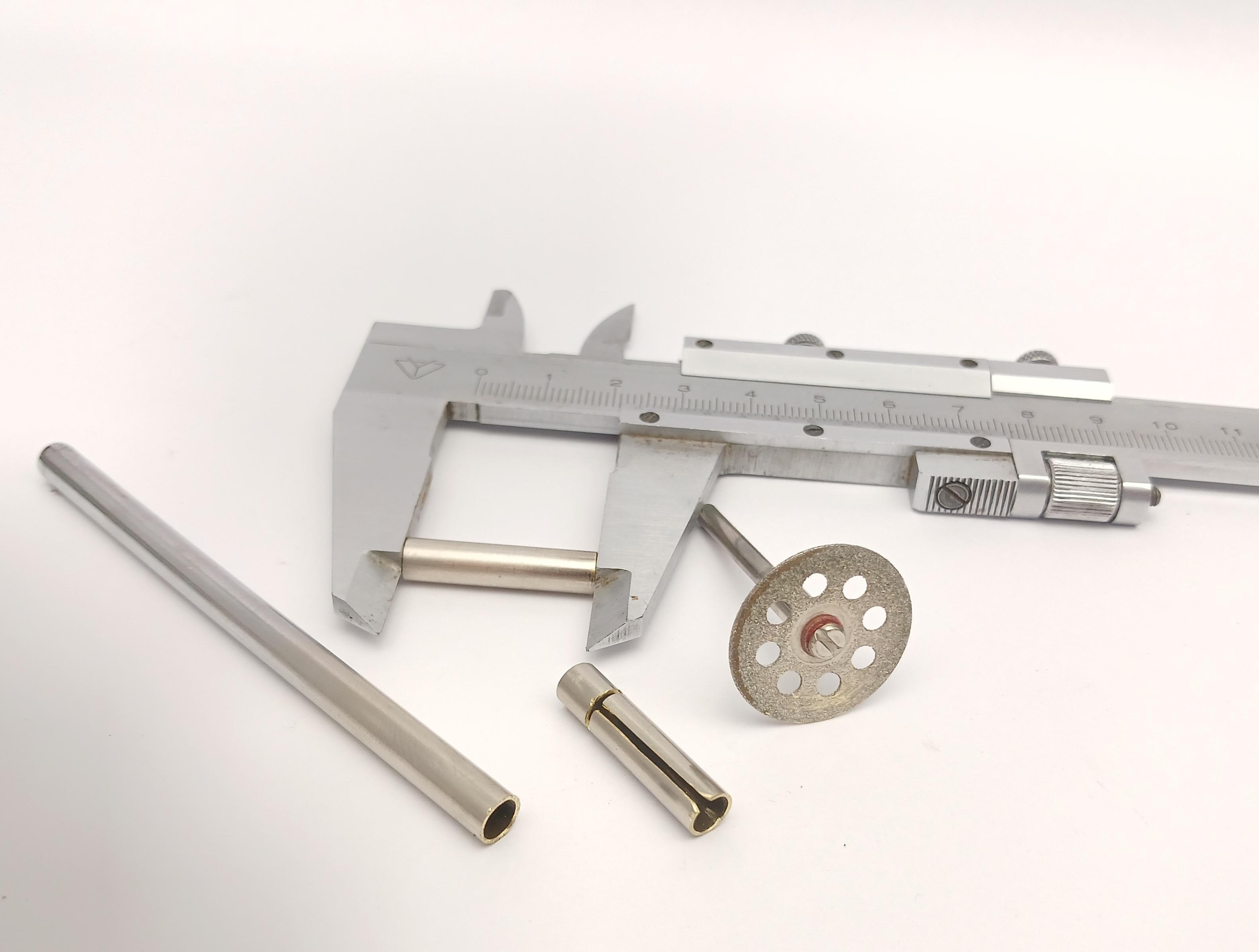 As the heater pins for my tube are 5mm I started by taking some 4.5mm inner diameter brass tubing and cut off two 25mm pieces.