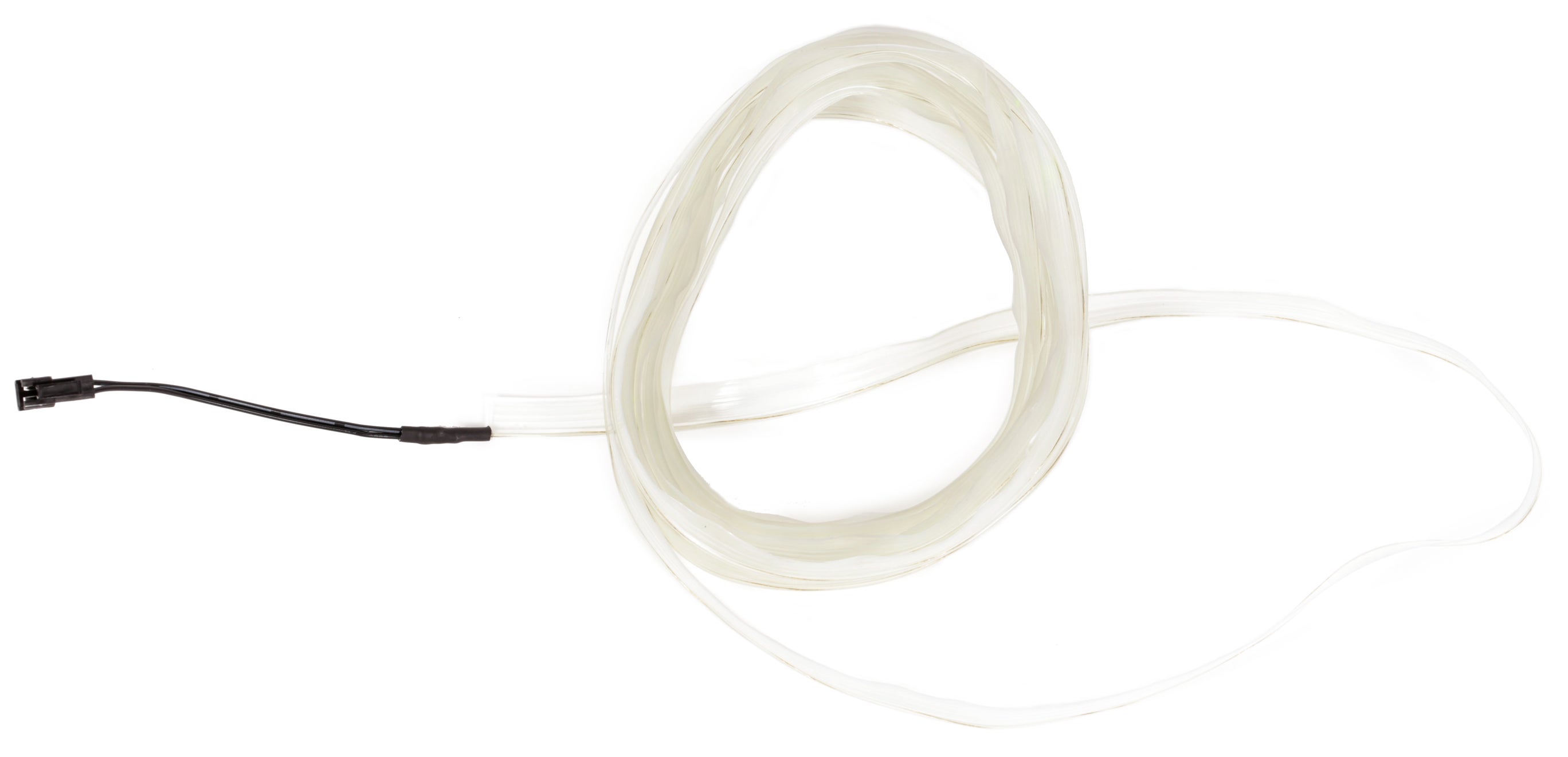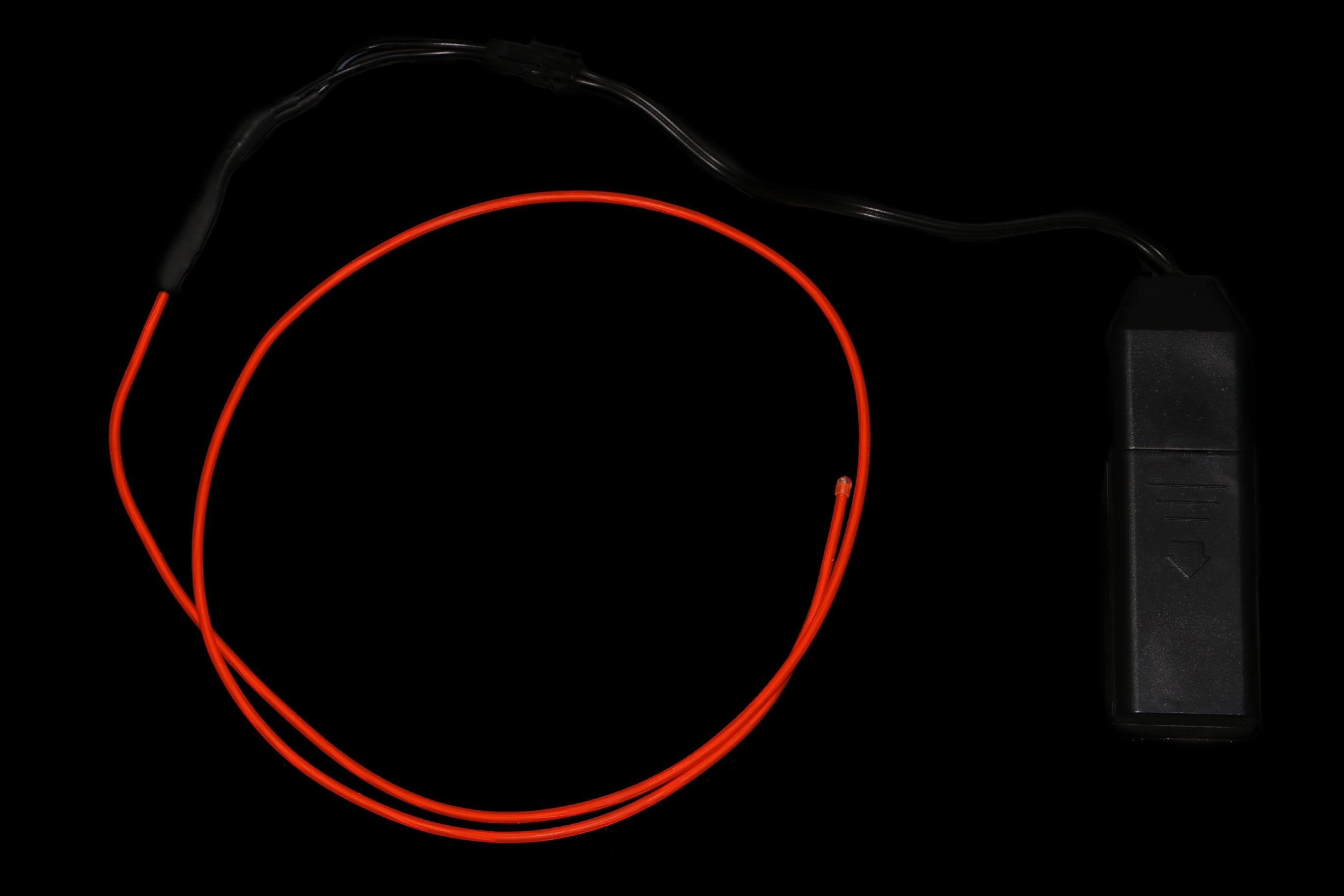 El (electroluminescent) wire is a thin, flexible, self-illuminating wire that glows along its length. It does not emit as much light as a light bulb or LED, and is not typically used as a light source. It is meant to be used as a decorative light source and is popular for costume or lighting effects. Since EL wire operates at very high voltage AC (alternating current). It offers less control and flexibility than the other light sources we have looked at, both on account of the voltage supply and the fact that it is not very bright to begin with.