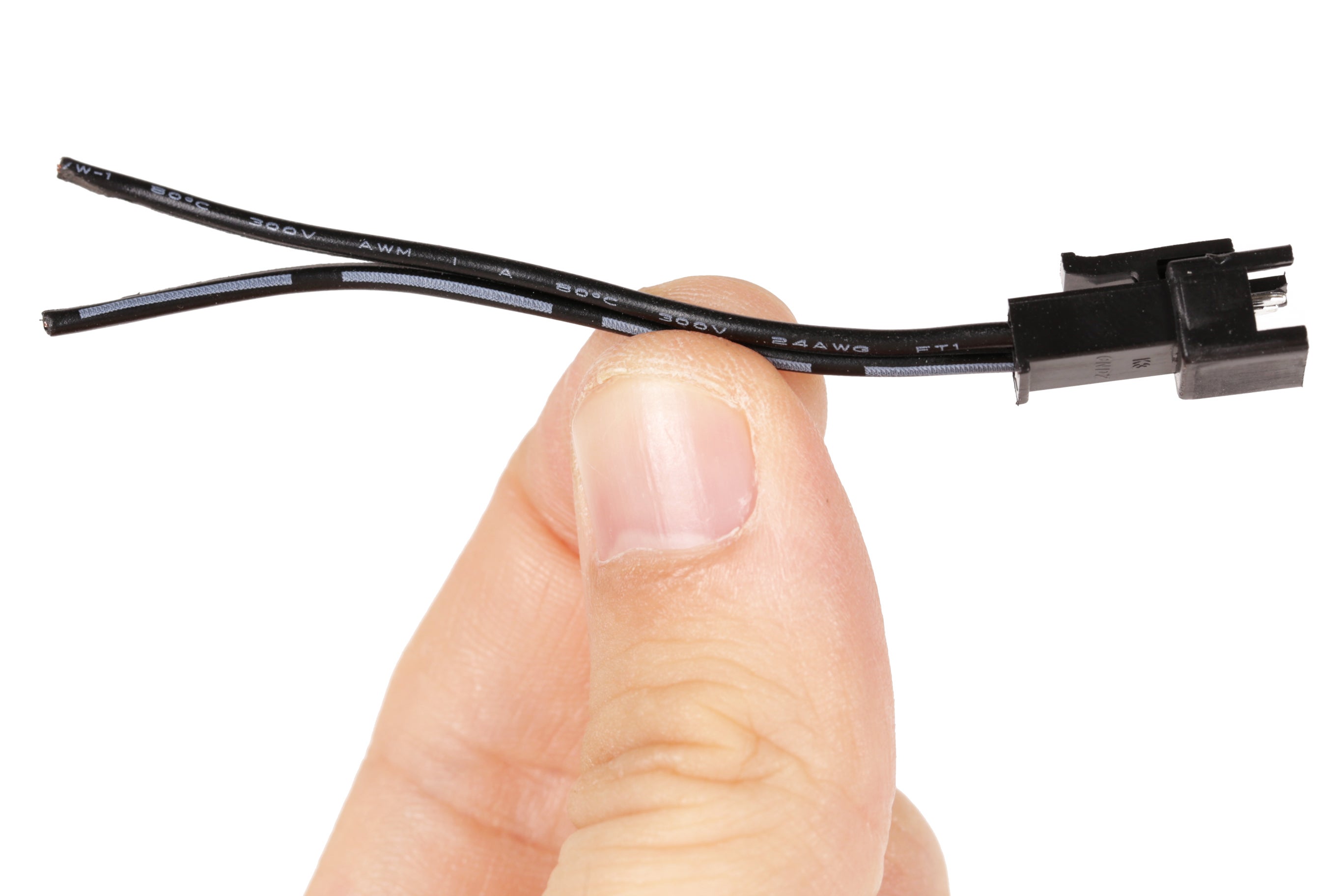While you could solder any two wires onto the end of the EL wire, it is best to acquire a 2-pin JST female plug. One of the wires will be soldered to the copper tape, and one wire will be soldered to the inner core. It does not particularly matter which wire is which, since it is AC current.