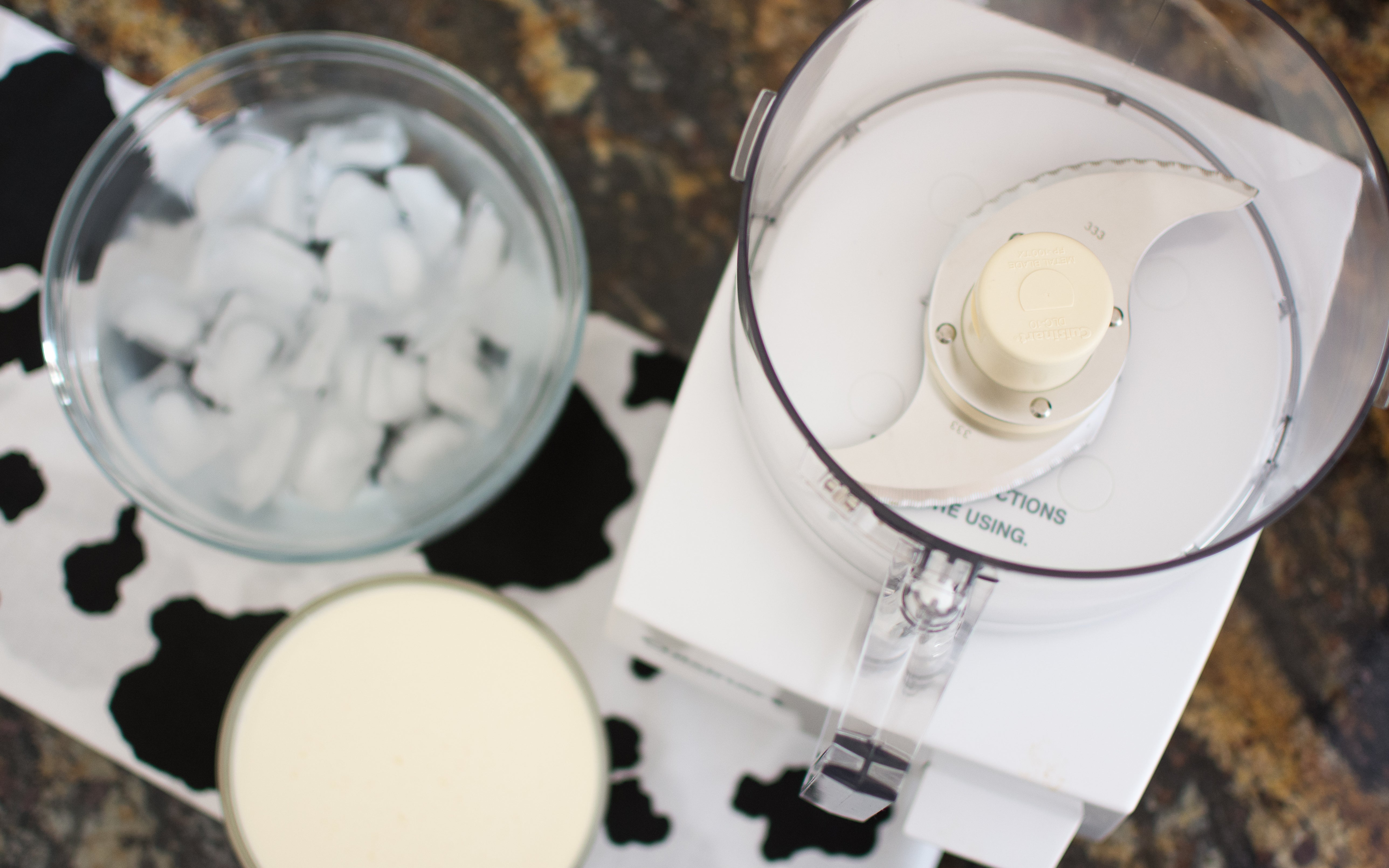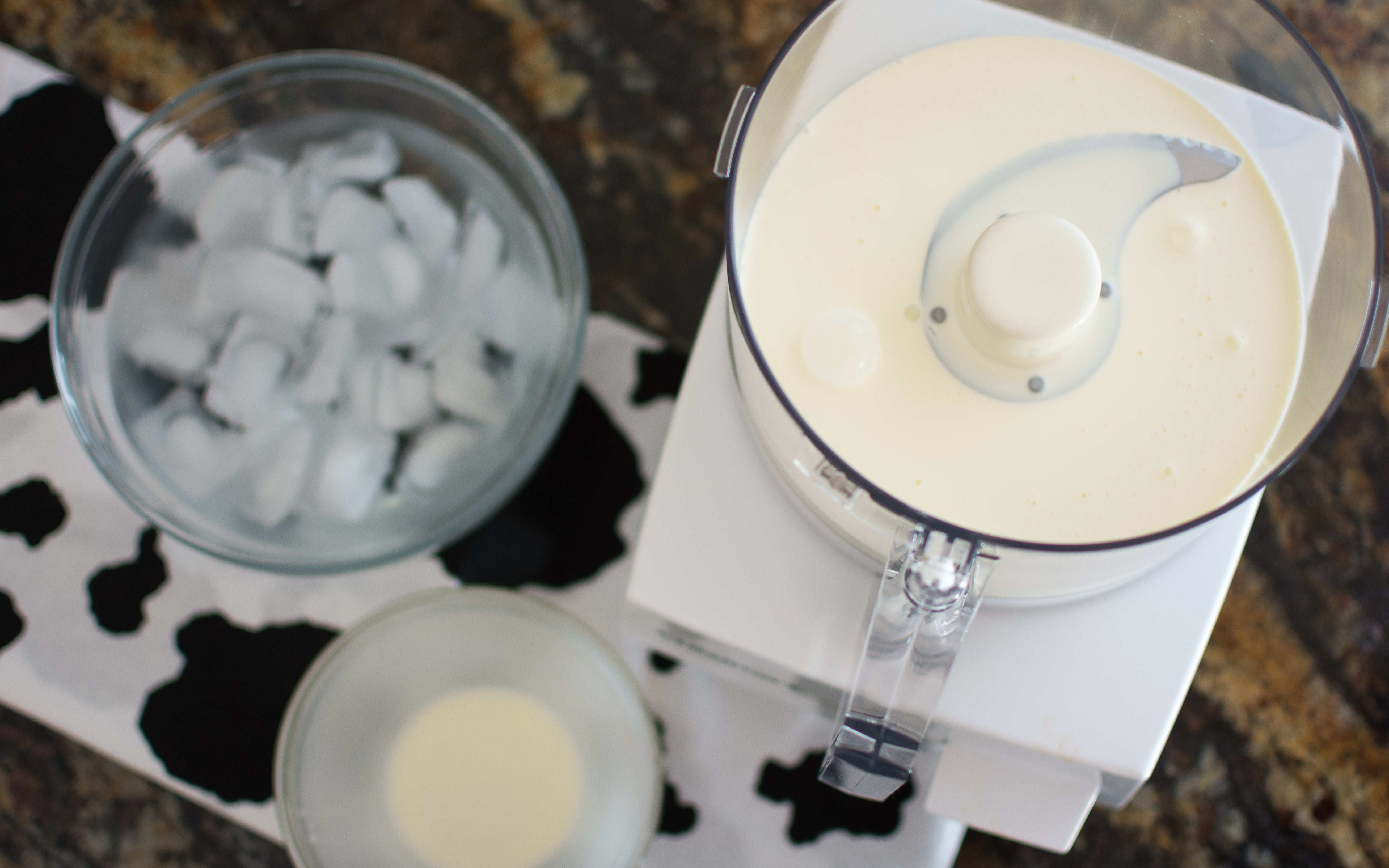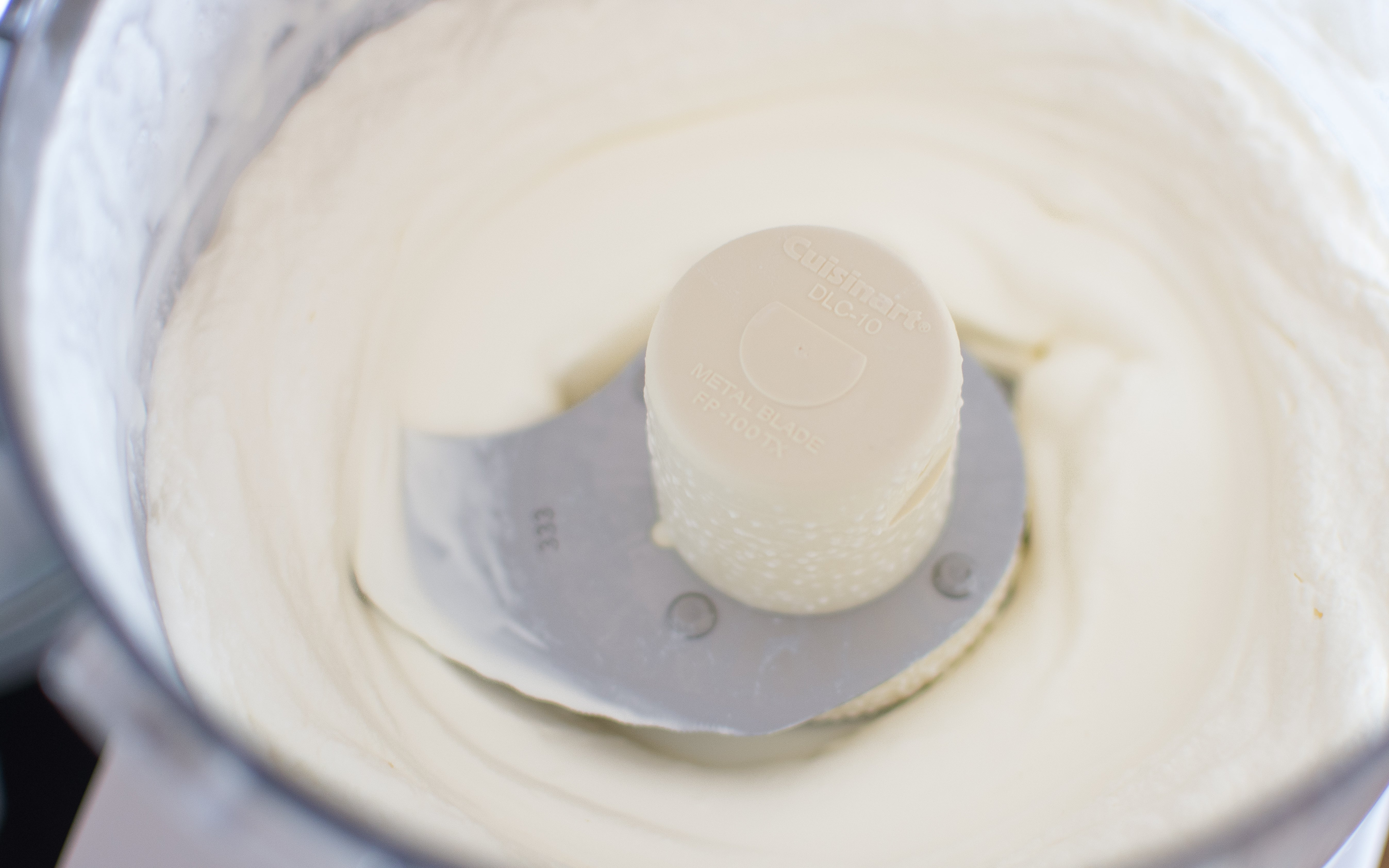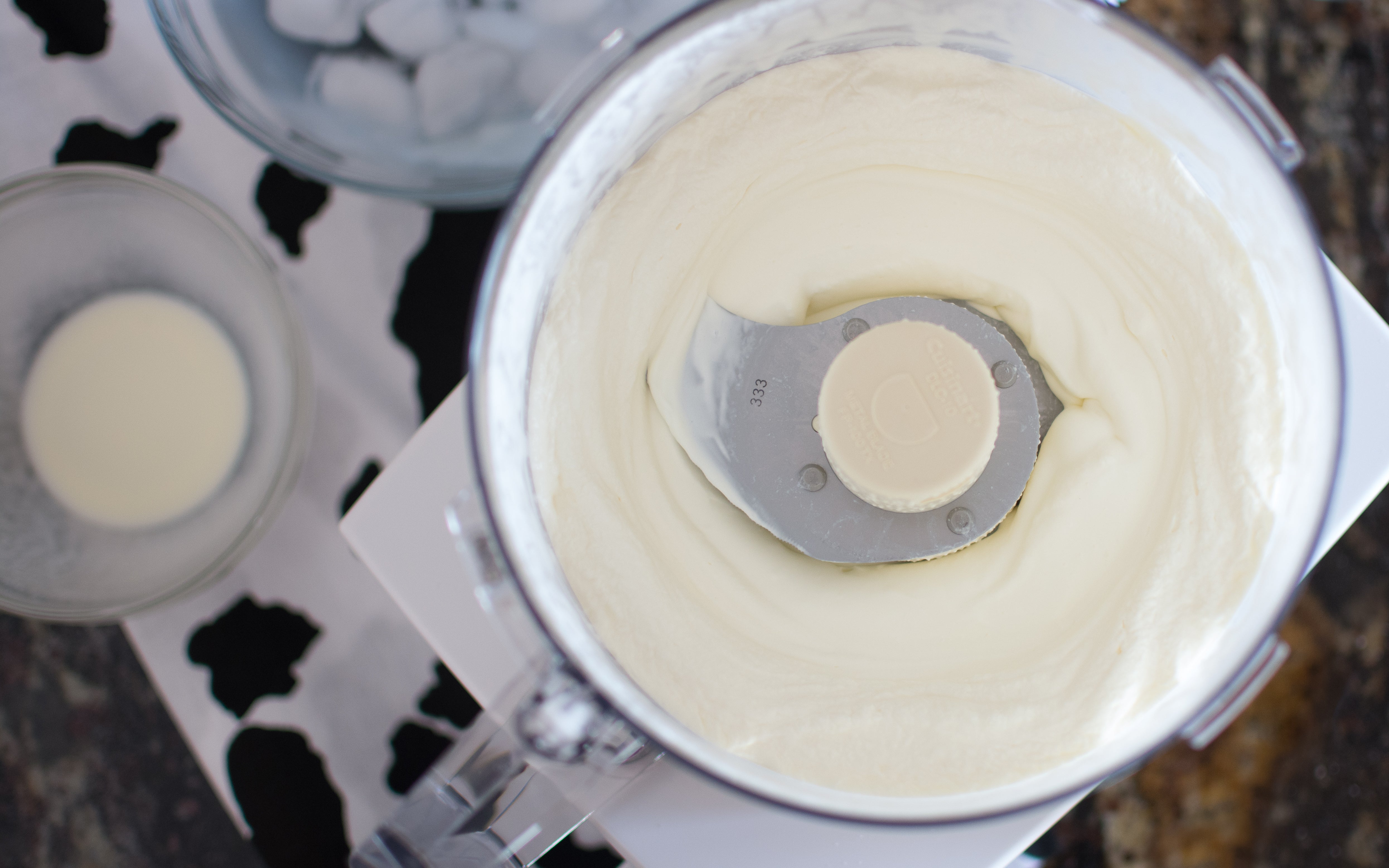 3. Turn the food processor on and let the cream process for about 3-5 minutes. After about 30 seconds you will see the cream thicken to whipped cream. If you are using the mason jar method you will need to start shaking the cream as hard as you can. You will definitely get a workout and I suggest finding a shaking buddy so you can take turns! It takes much, much longer than with a food processor.