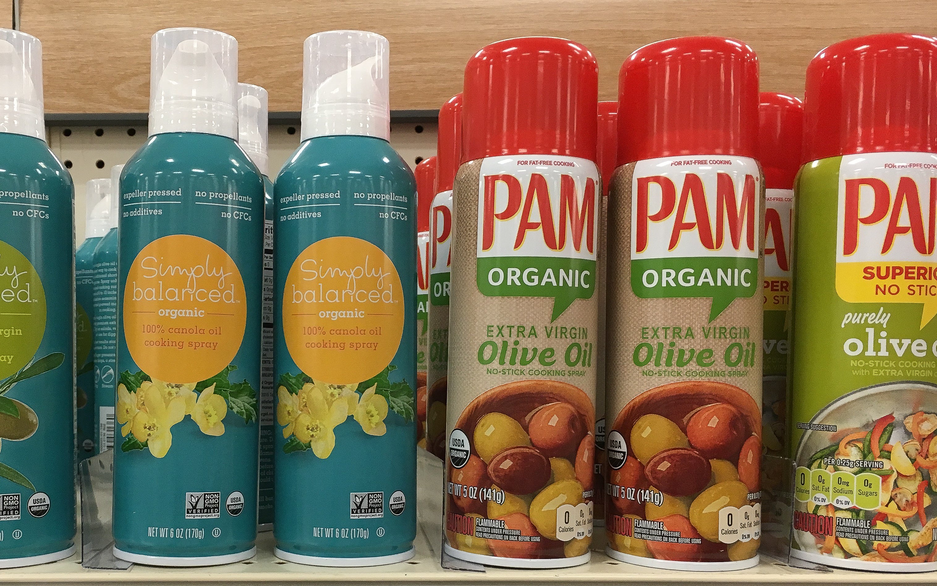 Liquid fats are oils. Common examples of oils used in baking are: canola oil, vegetable oil, and olive oil. They are typically used in quick breads, muffins, and cakes. Containers can be found in a variety of sizes and also in spray forms.