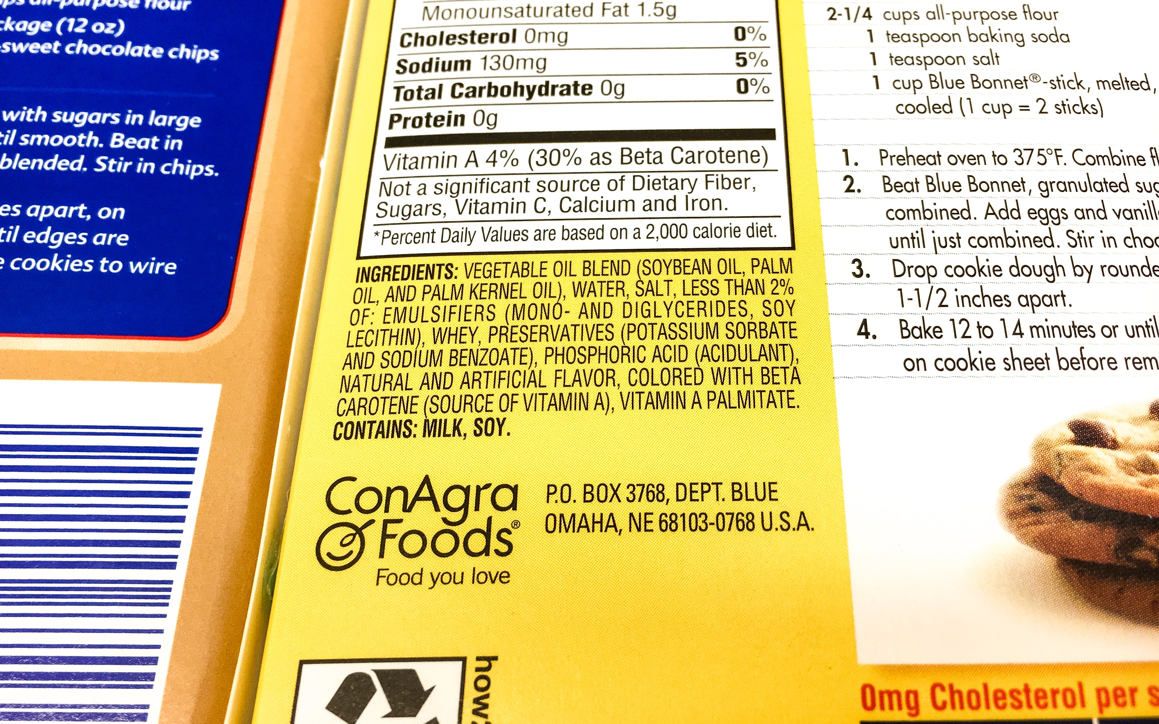 Margarine – Margarine is an ‘invented’ butter substitute made from numerous ingredients including: hydrogenated (more on this term in a bit) oils, water, milk, salt, emulsifiers, and flavorings. It is widely believed that margarine is a good alternative for those with dairy allergies, however, the majority of margarine brands contain some form of dairy.