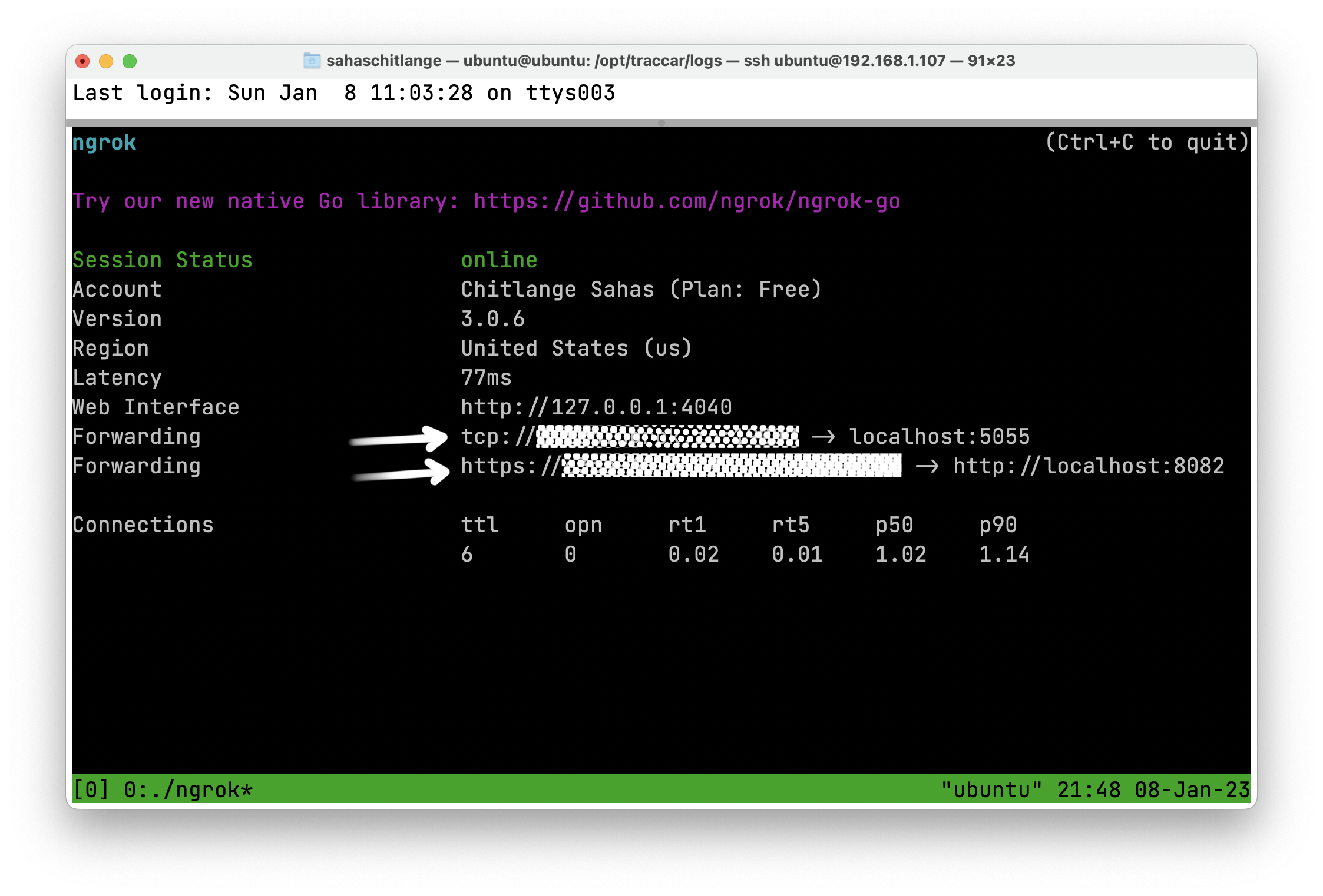 - Copy the two URLs that the ngrok session displays, we'll use this in our Python code next. (see images for better clarification). They look like these: