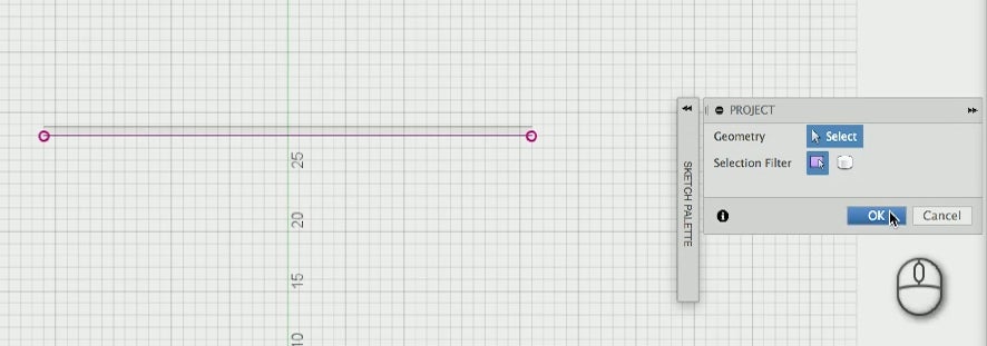 Click on the underside edge of the tabletop, and you'll get a pink line with points at each end. Click OK to exit the Project tool.